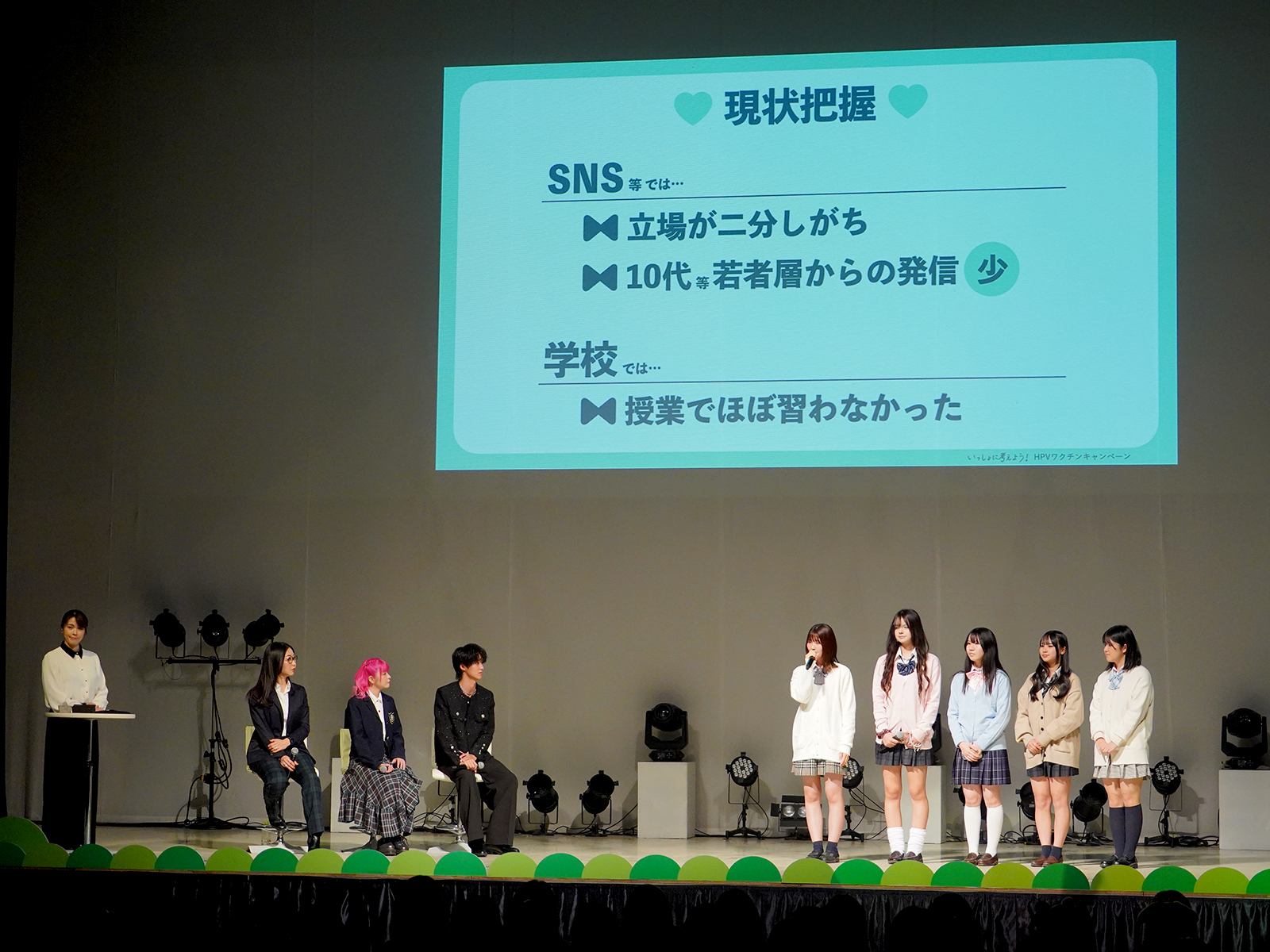 特に印象的だったのは、学生たちが「調べて正しい知識を持つことで、子宮頸がんについて相談したり、考えるきっかけにしていきたい」と訴えた場面です。観客からは温かい拍手が送られ、次世代を担う若者たちの取り組みに共感の声が広がりました。