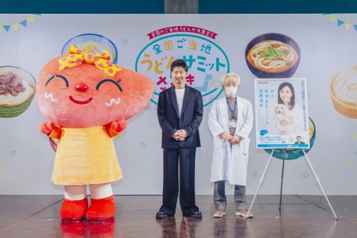 「全国ご当地うどんサミットinさぬき」では、ステージイベントのほかにうどんブースが出店され、会場外には肝炎ウイルス検査を受けられる健診車が設置されました。EXILE MAKIDAI氏もステージ出演後に肝炎ウイルス検査を受けました。