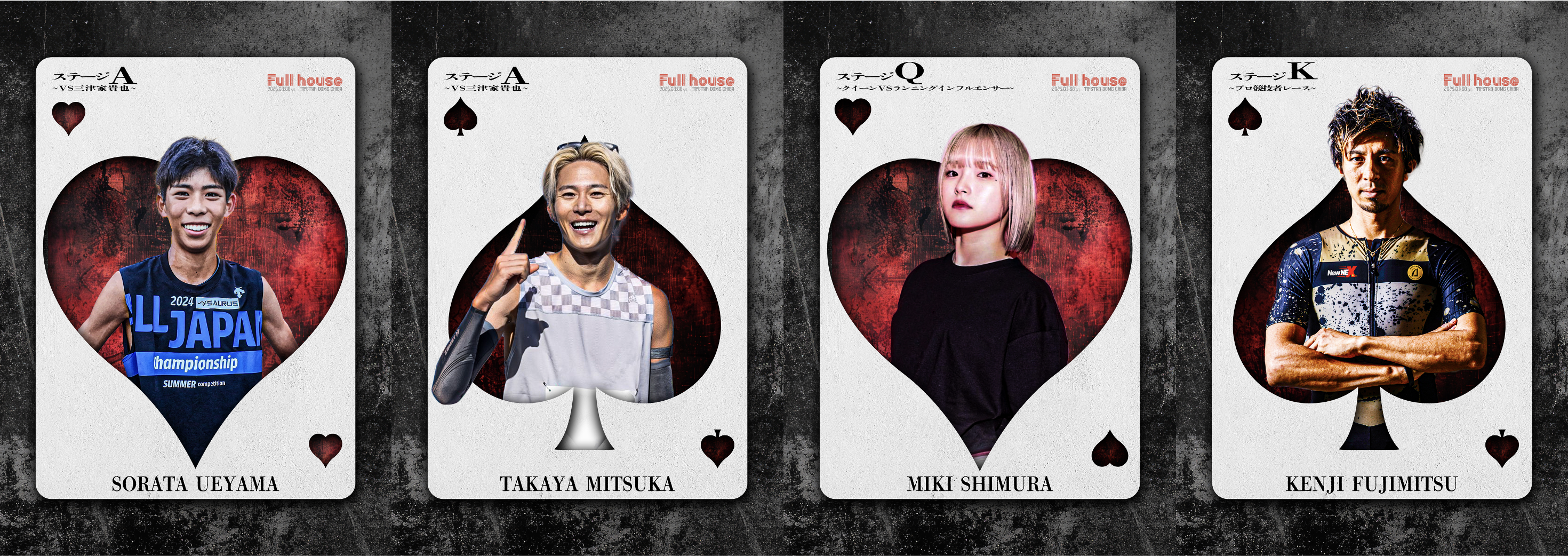 「Full house」では「選手に「夢」を、観客に「熱狂」を。」をコンセプトとして、主催者の三津家貴也はじめ世界陸上銅メダリスト藤光謙司など豪華メンバーが出走し、会場を盛り上げます。
