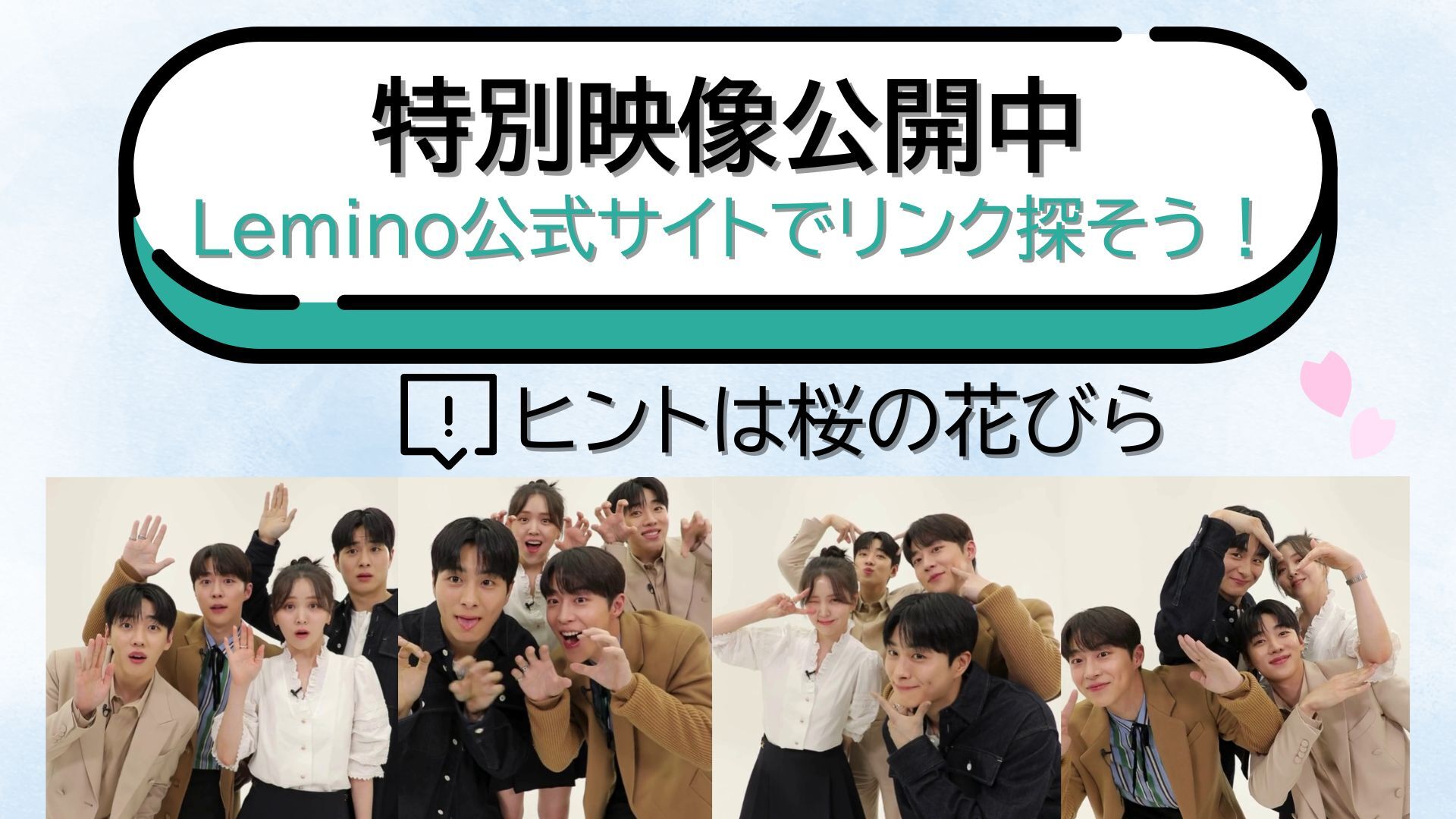 「チェックイン漢陽」Lemino公式サイトでは、ここでしか見られない特別映像が楽しめる企画を実施中です。サイト内のどこかにキャストの特別な映像が見られるリンクが2つ隠れていますので、ぜひ探してみてください!桜の花びらがヒントです。