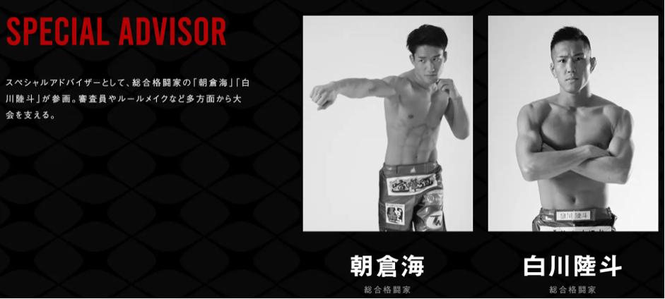 登録者数340万人超え(2024年10月現在)の人気YouTuberでもある総合格闘家の朝倉未来がCEOを務め、スペシャルアドバイザーとして総合格闘家の朝倉海、総合格闘家の白川陸斗が参画しています。