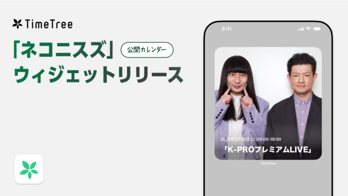スケジュール共有アプリ「TimeTree」を運営する株式会社TimeTree(本社:東京都、代表取締役:深川 泰斗)は、お笑いコンビ「ネコニスズ」がTimeTreeの公開カレンダーウィジェットを導入したことをお知らせいたします。芸人がTimeTreeの公開カレンダーのウィジェットを活用するのは業界初の試みです。ファンはネコニスズの最新出演情報やライブスケジュールを、スマートフォンのホーム画面からチェックできるようになります。さらに、ここでしか見られないウィジェット限定のオリジナル画像の配信も予定されています。「ライブやテレビ出演の情報をすぐ知りたい」「推しの活動をもっと身近に感じたい!」そんなファンのニーズに応えた、新しい推し活の形です。