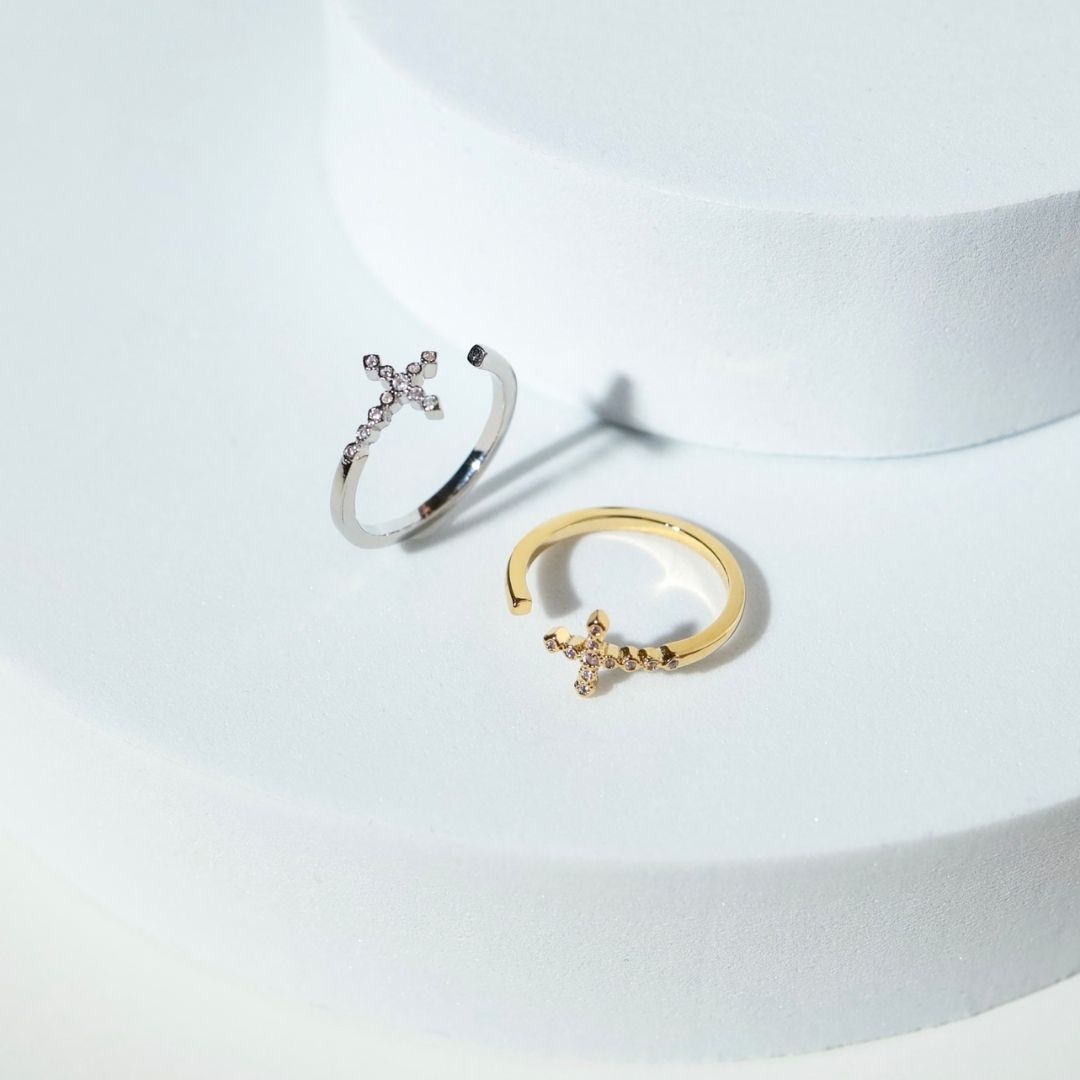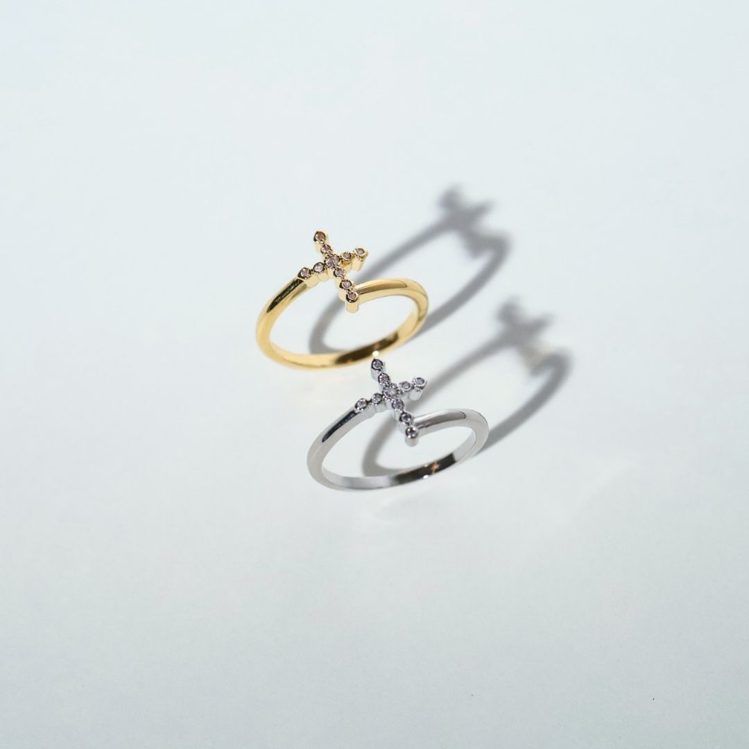 クロスが浮き上がるような独特のデザインが特徴的なこのリングは、幸福をもたらすとされ、願い事を叶えるお守りとしてもお使いいただけます。ピンキーリングサイズもご用意しており、繊細ながらも存在感のあるアクセントとして日常に取り入れやすいです。