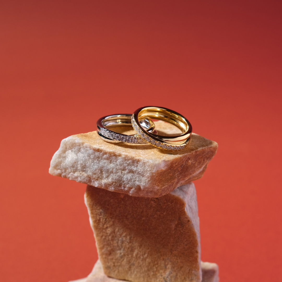 あなたが持つ多面的な魅力を表現する二つの輪がそれぞれの角度から眺める度に、新たな発見と感動をもたらし、そしてあなたという一つの芯となって存在している風景を象徴します。