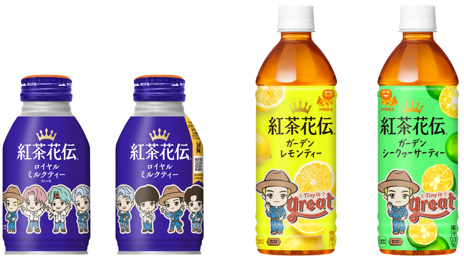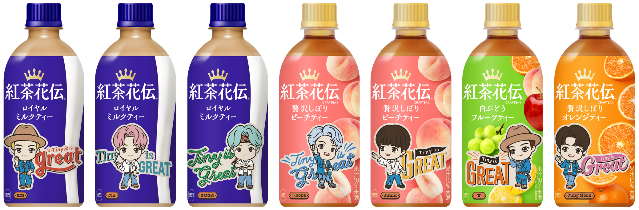 「TinyTAN」各キャラクターの個性溢れるパッケージデザインとともに、「紅茶花伝」の素材と製法にこだわった本格的な紅茶の味わいを、仕事中や勉強、家事の合間などの気分転換にぜひお楽しみください。