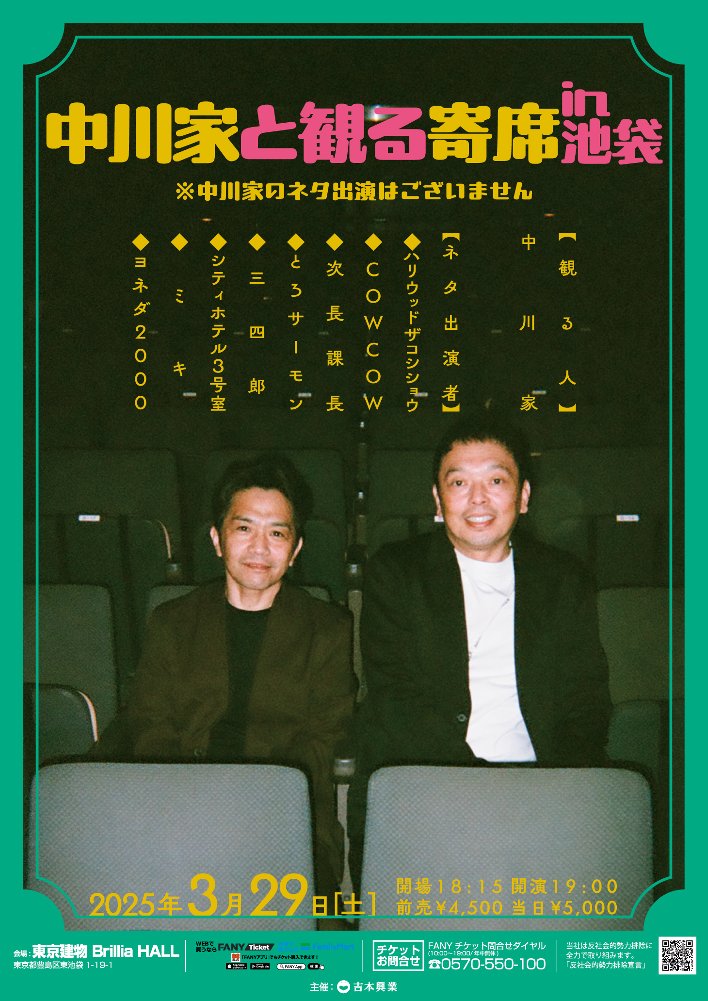 チケットURL:https://yoshimoto.funity.jp/r/nakagawaketomiruyose250329/