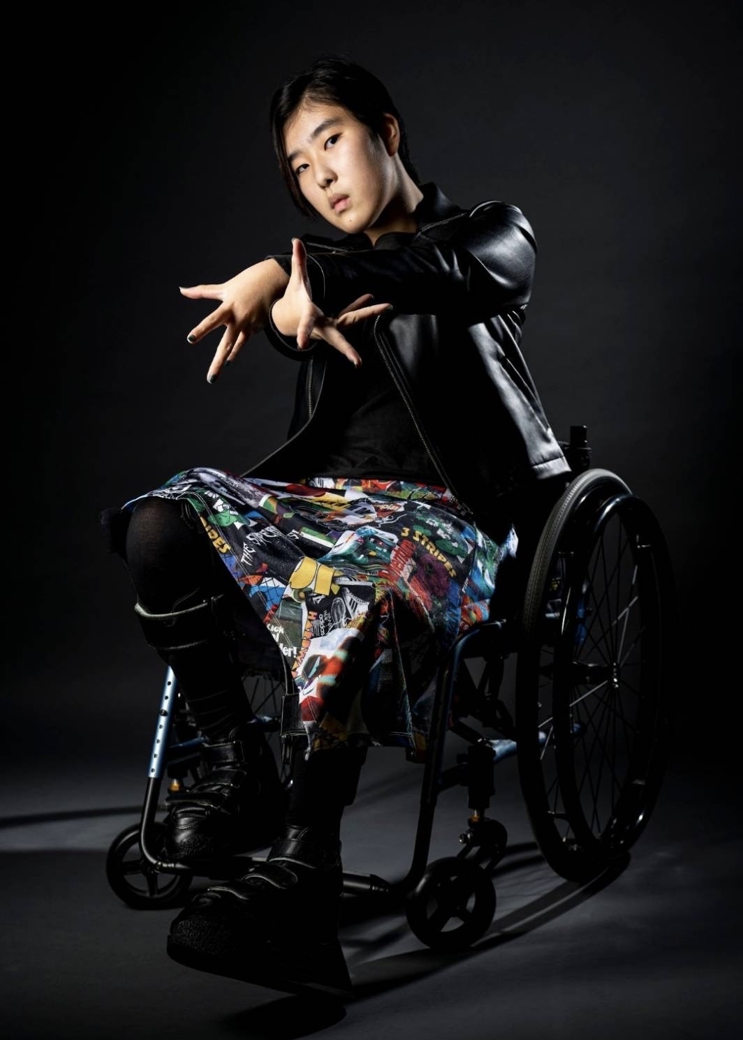 フィンガーダンスを中心に、車椅子でのダンスや長下肢装具でのダンス、またそれらを使用せず踊る等様々な表現を駆使しながら日々成長し続ける二分脊椎症ダンサー。