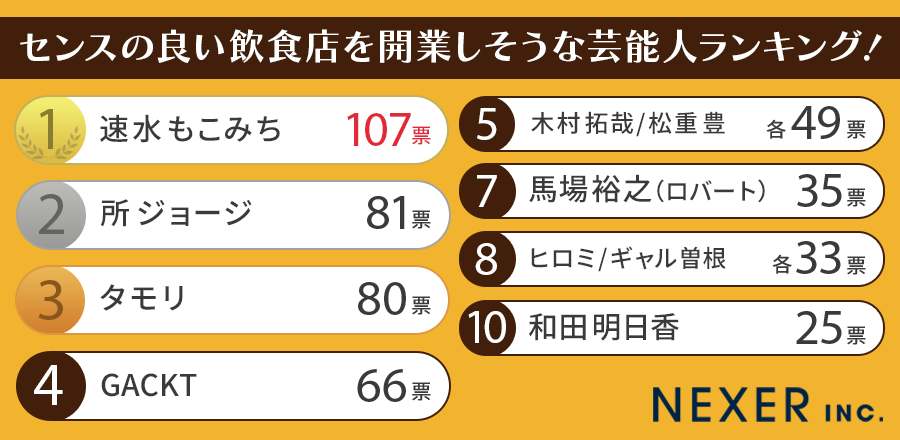 株式会社NEXER・センスの良い飲食店を開業しそうな芸能人に関する調査