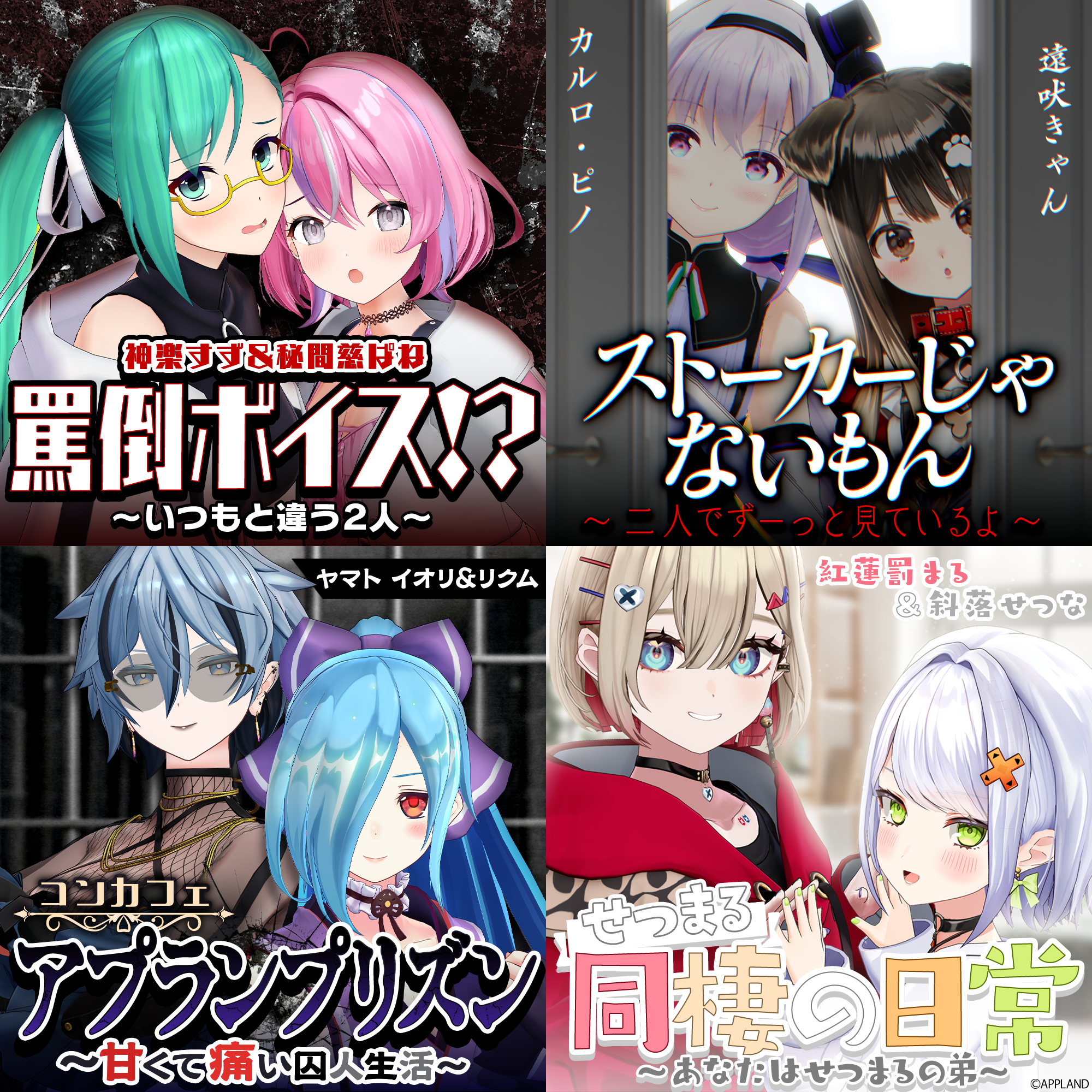 アップランド所属、「.LIVE」「ぶいぱい」メンバーによる限定掛け合いボイス4種を2月26日(水)から販売中!4つのペアに分かれたメンバーたちが、個性あふれるテーマを持って登場します。罵倒から甘々な掛け合いまで、普段は見られないような特別な会話にご注目ください!