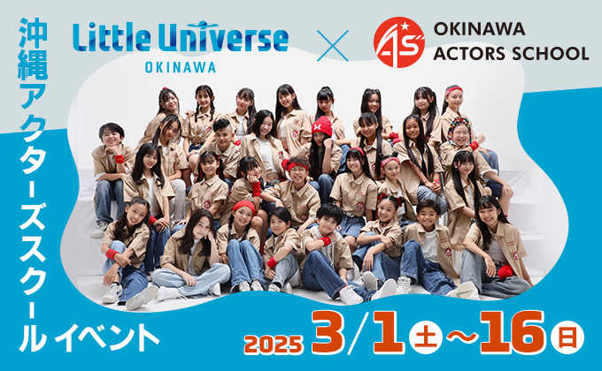 株式会社リトルユニバース(本社:沖縄県浦添市、代表取締役:藍川眞樹)は豊見城市のハイブリッドエンタメ施設「Little Universe OKINAWA」で、2025年3月1日(土)から16日(日)に沖縄アクターズスクールとのコラボイベントを開催します。