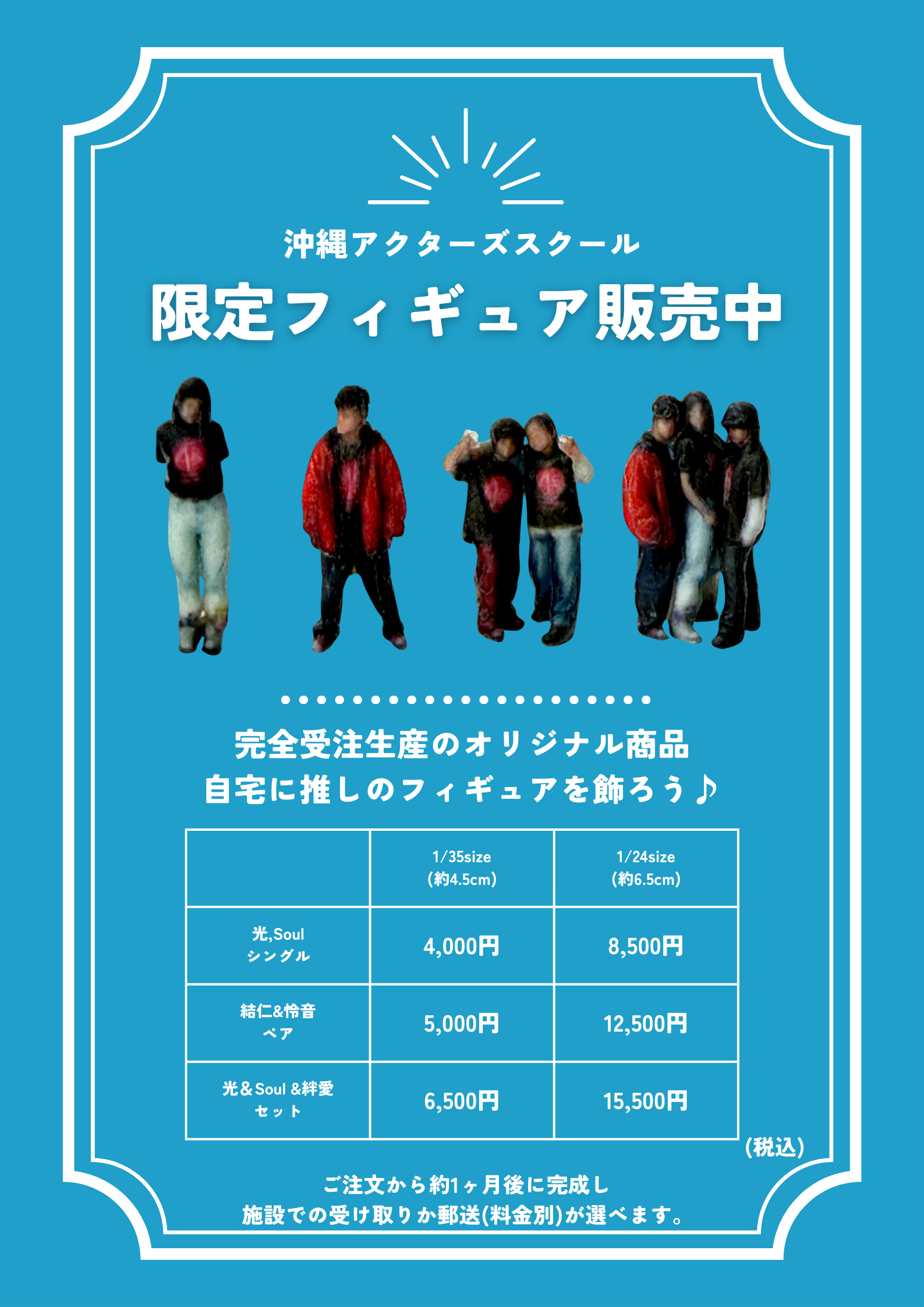 沖縄アクターズスクールの玉城光、Soul、絆愛、桃原結仁、又吉怜音のミニチュアフィギュアをイベント期間限定で販売します。