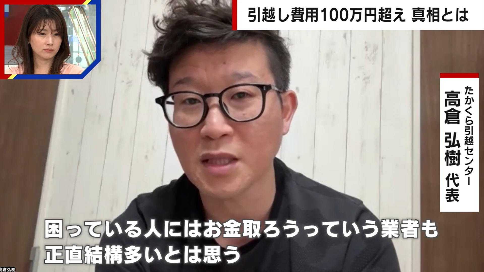 そして、搬入時間の制限についても、「そこに合わせて動かないといけないので、金額はおのずと上がってしまう」と説明。その上で、たかくらさんは「まだ引っ越し日まで時間があるので、落ち着いていろんな方に相談していただいて、ちゃんとした業者選びをやった方がいいと思う」と、アドバイスを送りました。