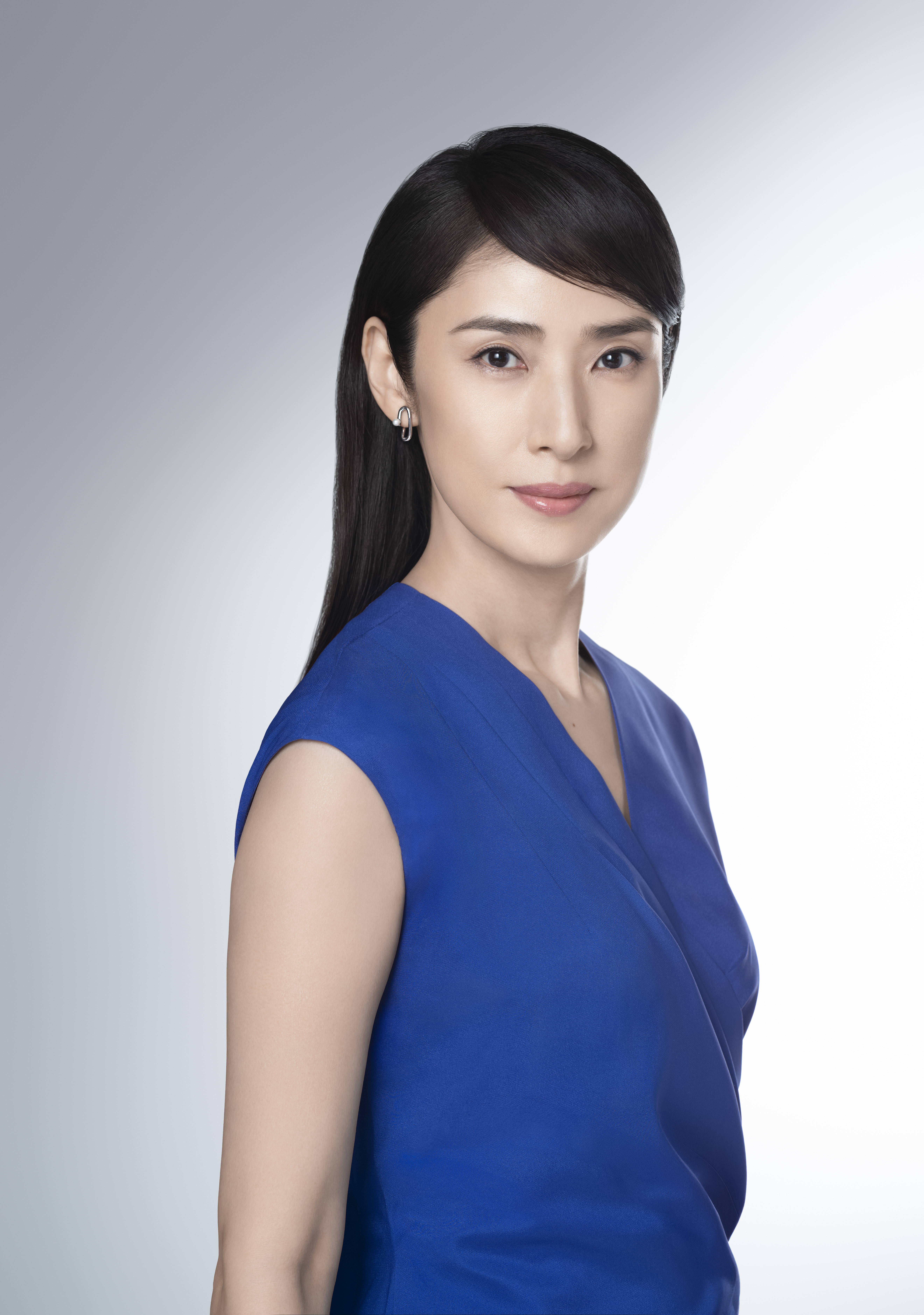 トランシーノのイメージカラーである青と白を基調とした空間の中、透き通るような美肌と、堂々とした佇まいの天海さんが届けるメッセージにぜひご注目ください。