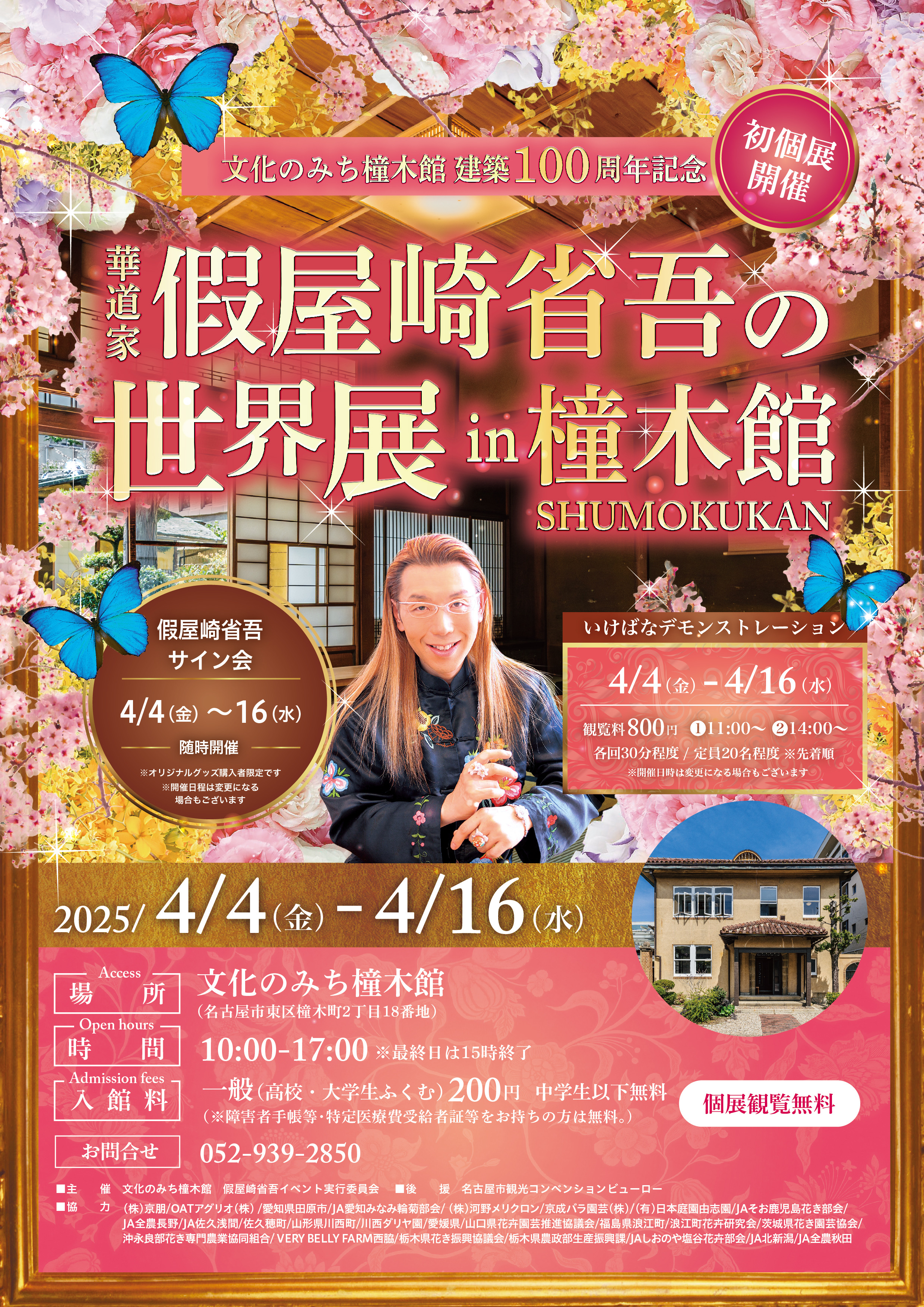 華道歴40周年 假屋崎省吾が、名古屋市「文化のみち橦木館」にて初の個展を開催するに伴い、4/4(金)9:00よりメディア内覧会、9:30よりオープニングセレモニーを開催します