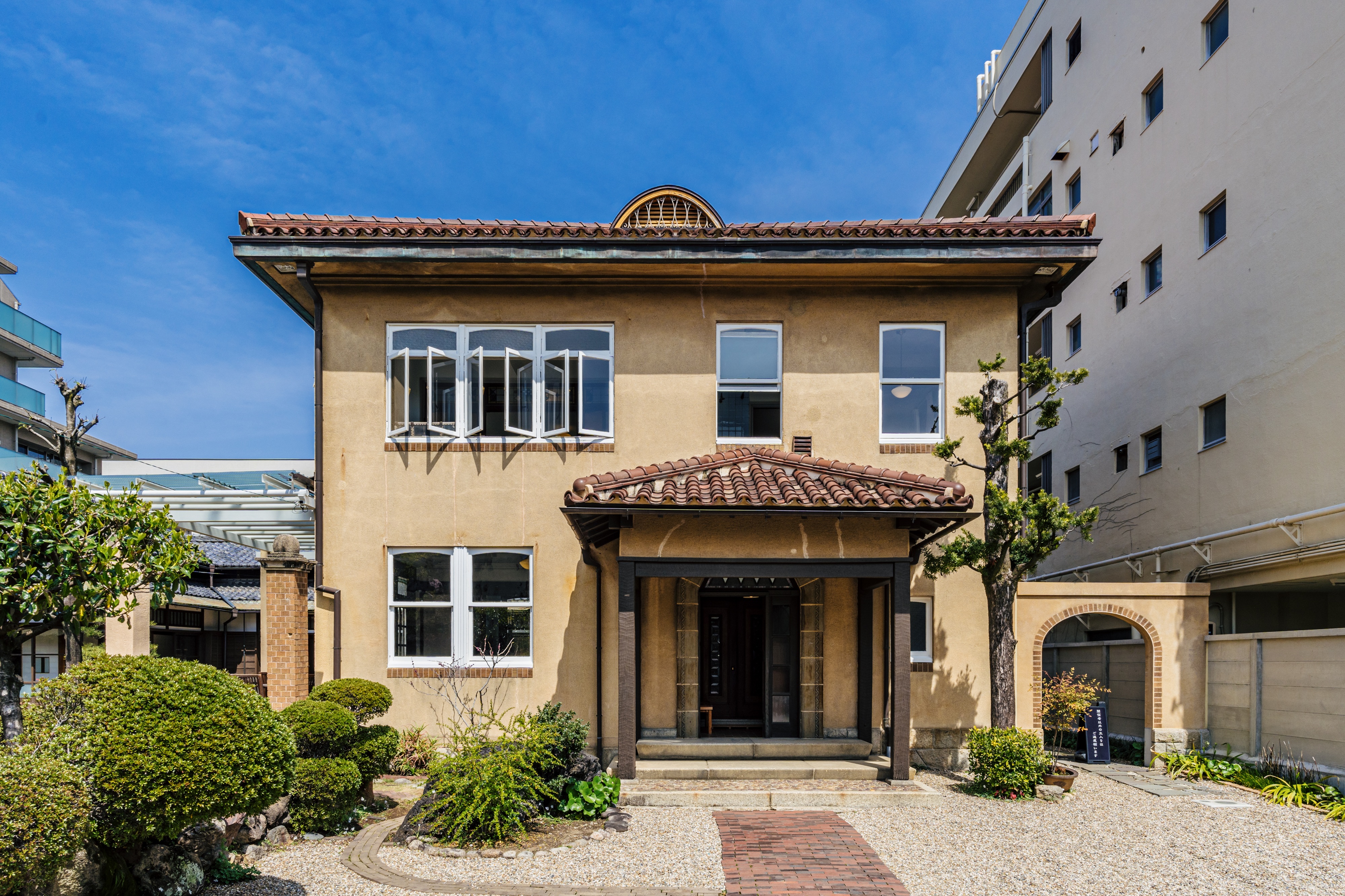名古屋市有形文化財・景観重要建造物指定「文化のみち橦木館」は、輸出陶磁器商の井元為三郎よって、1926年(大正15年)に建てられた邸宅 ステンドグラスを贅沢にあしらった洋館、懐かしい薫りただよう和館、四季折々の趣が時を忘れさせる庭園、大正ロマン溢れる和洋折衷の歴史的な建物と、華道歴40周年を迎えた元祖華道家 假屋崎省吾のいけばな作品との優美秀麗なコラボレーションとなる美の世界を展覧します