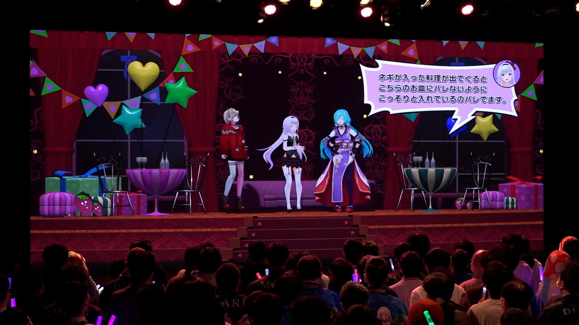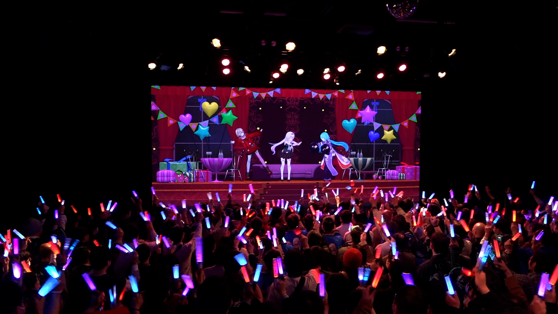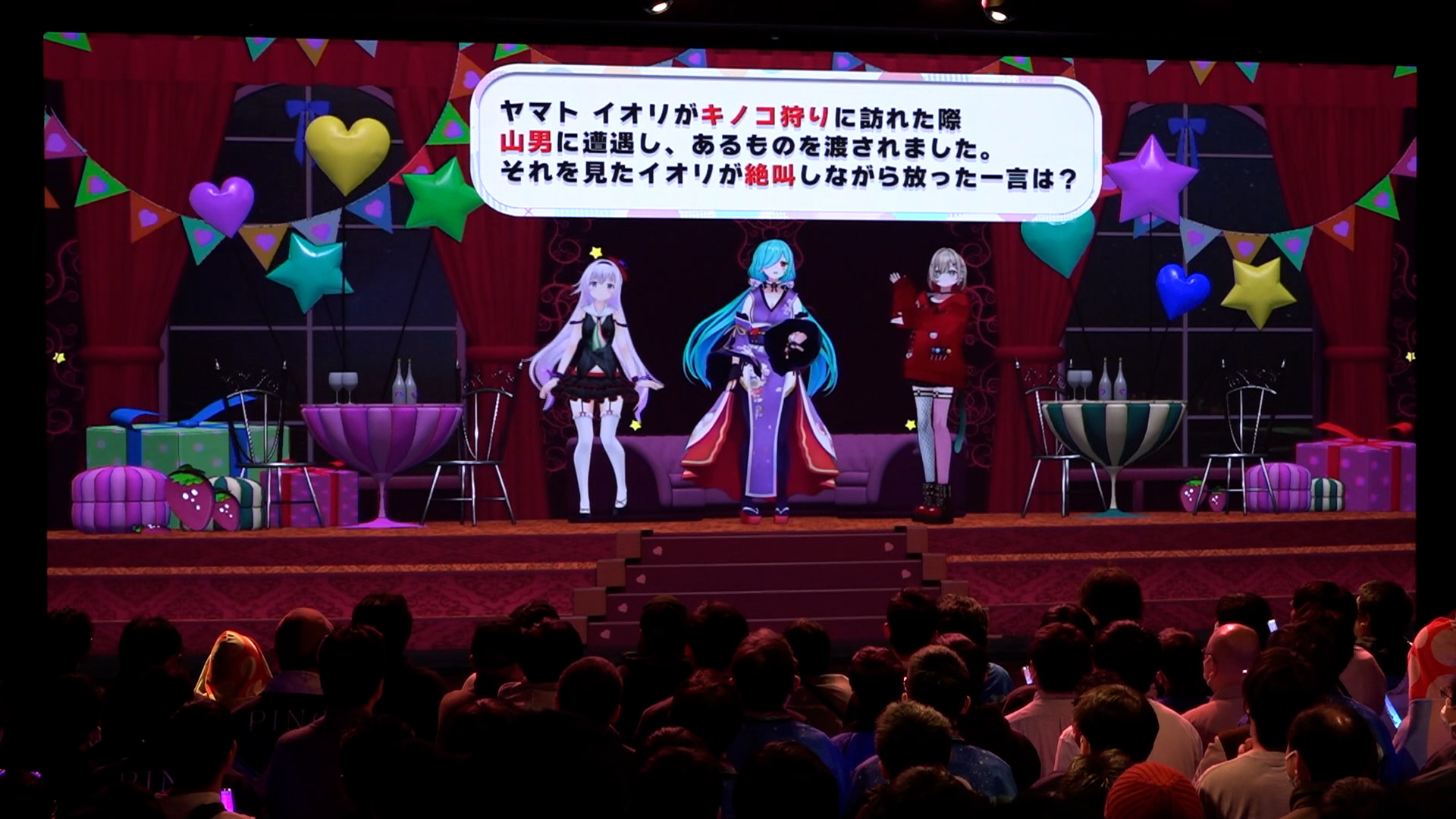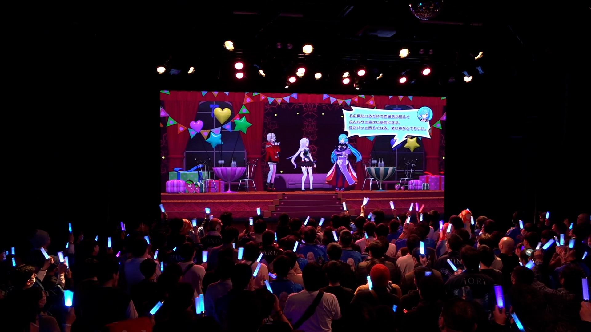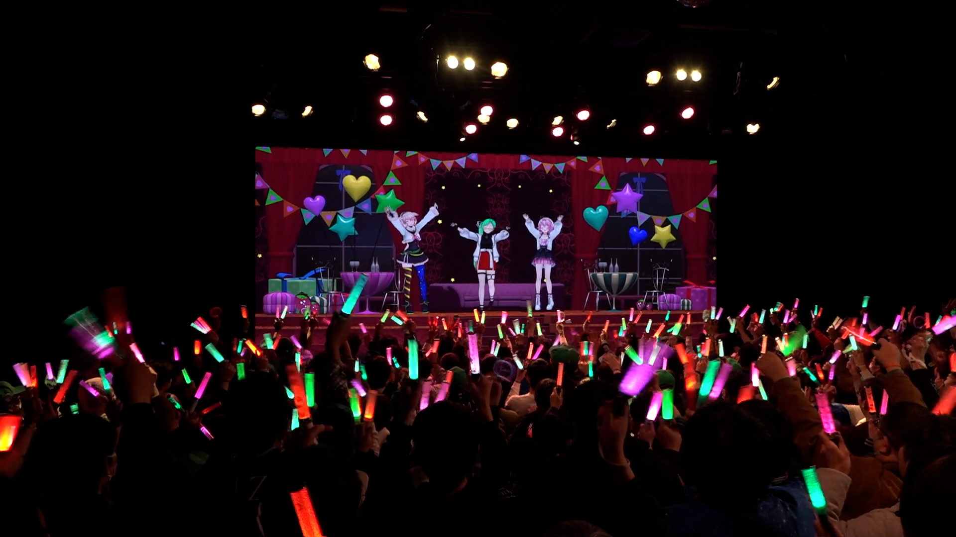 いよいよ最後の部。オープニングトークには神楽すず、もこ田めめめ、秘間慈ぱねが登場。コールアンドレスポンスが繰り広げられる中、メンバーがポーズを取るたびに、それに呼応するように観客も同じポーズを取る姿が見られ、一体感のあるオープニングとなった。