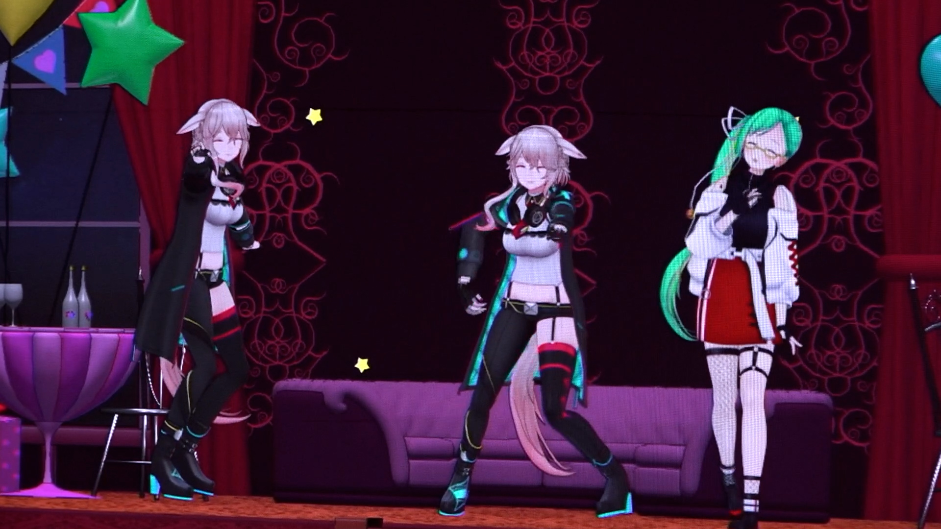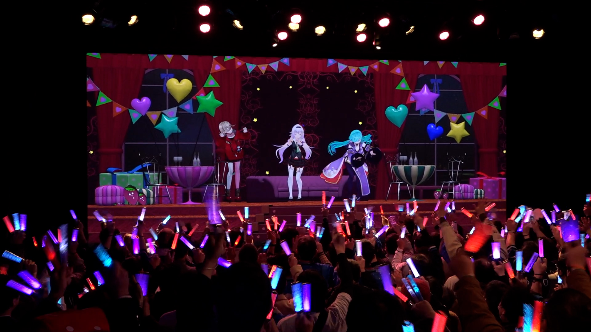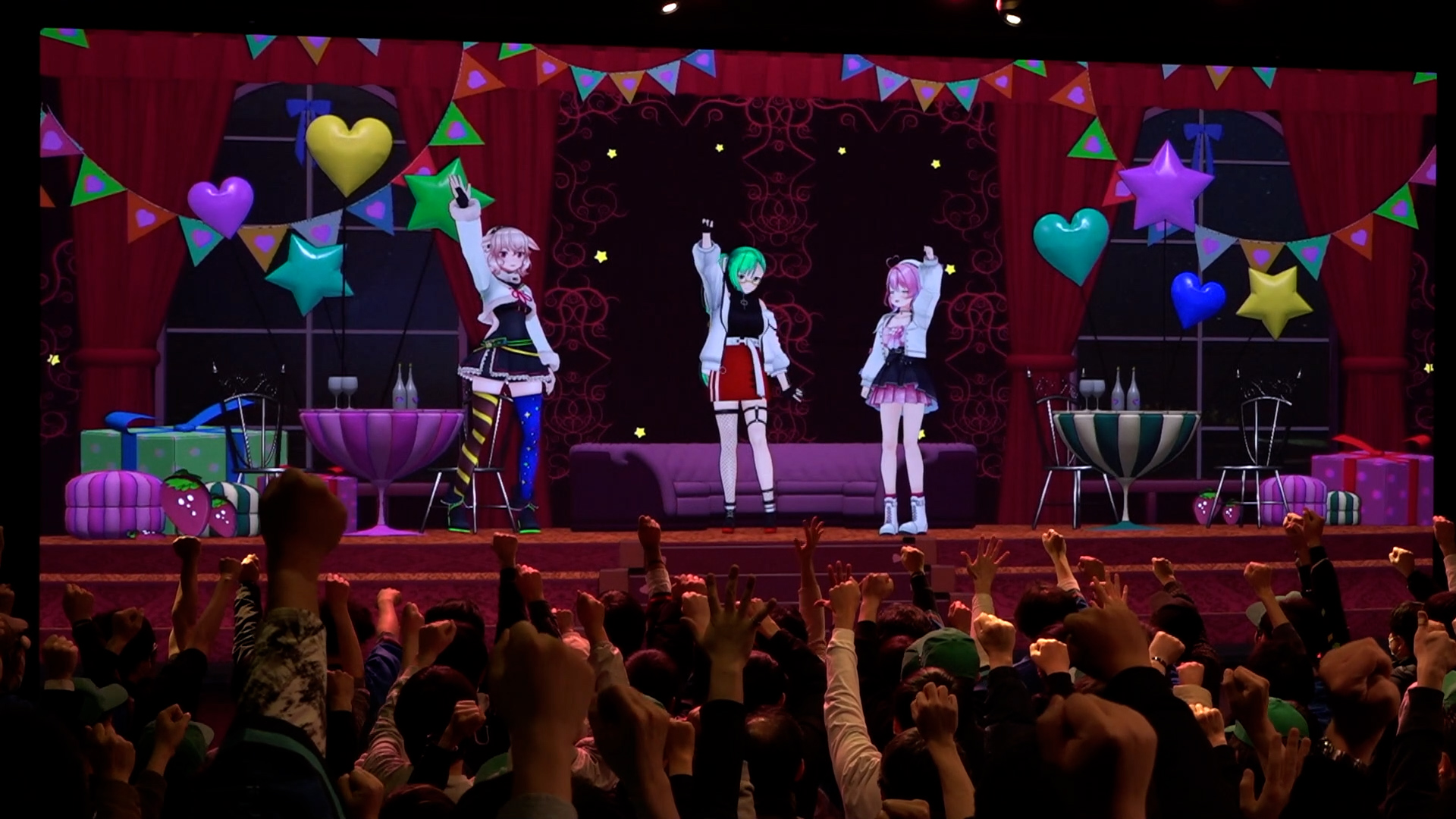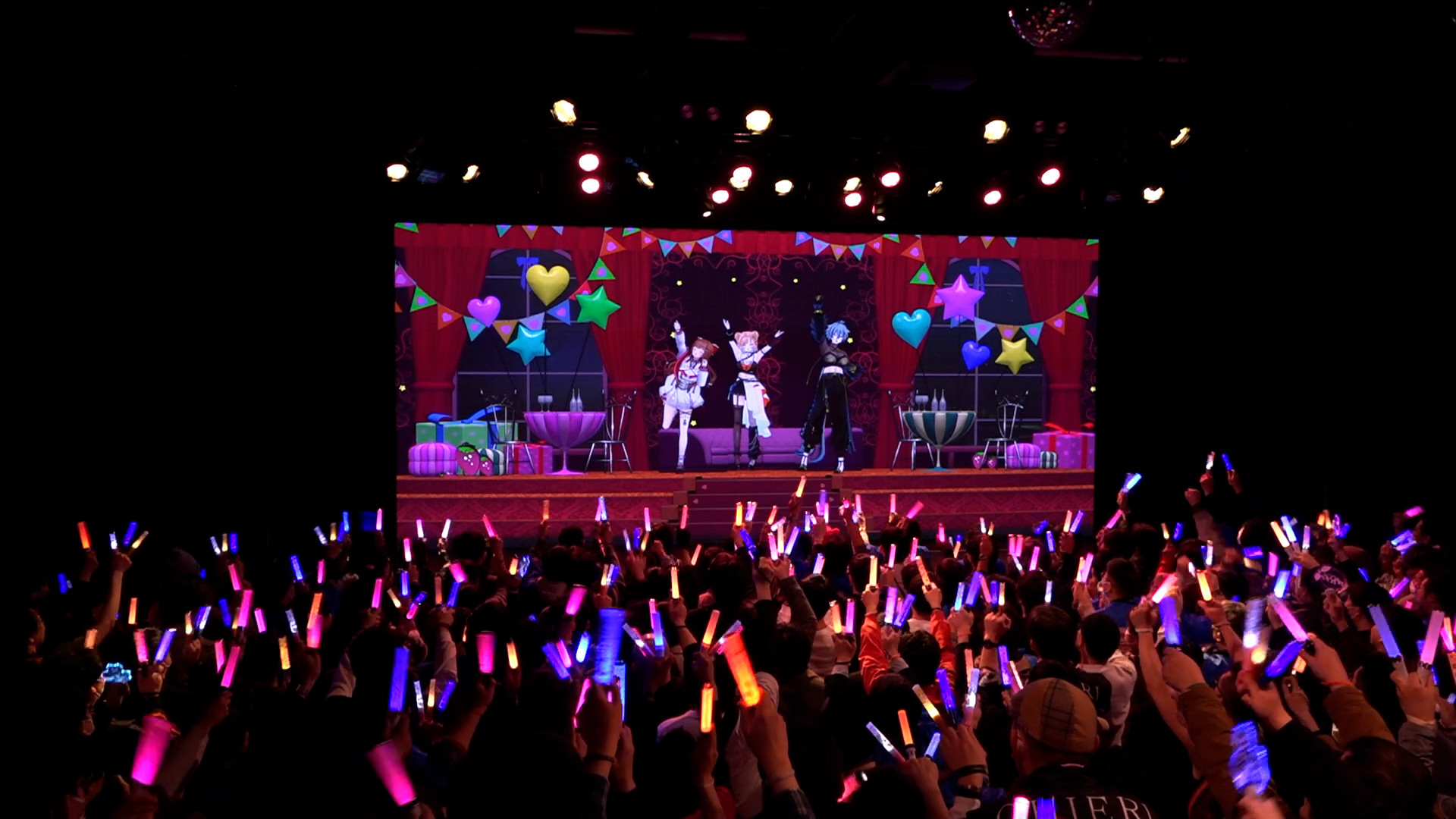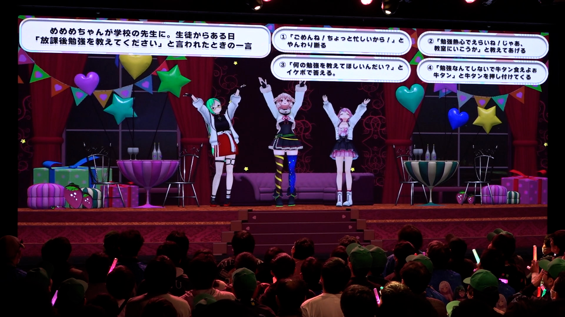 いよいよ最後の部。オープニングトークには神楽すず、もこ田めめめ、秘間慈ぱねが登場。コールアンドレスポンスが繰り広げられる中、メンバーがポーズを取るたびに、それに呼応するように観客も同じポーズを取る姿が見られ、一体感のあるオープニングとなった。