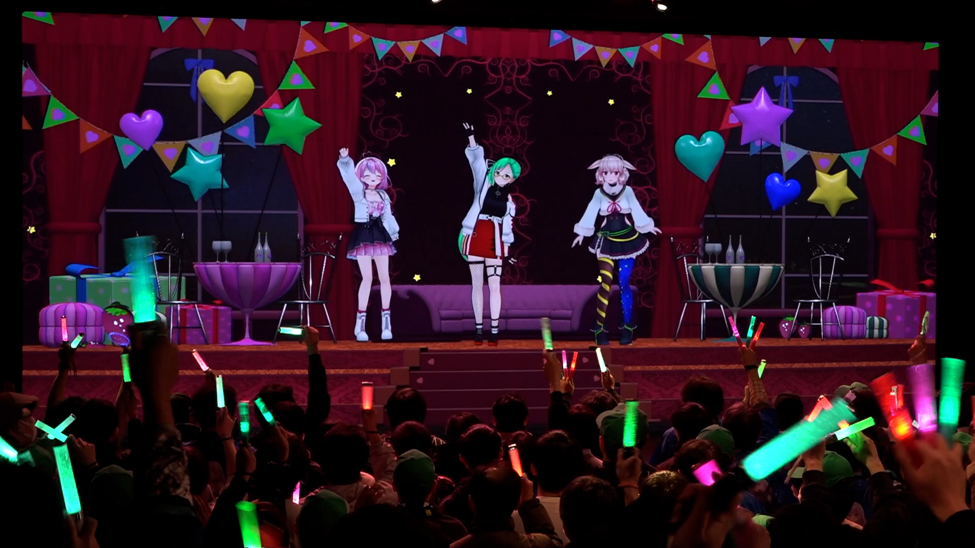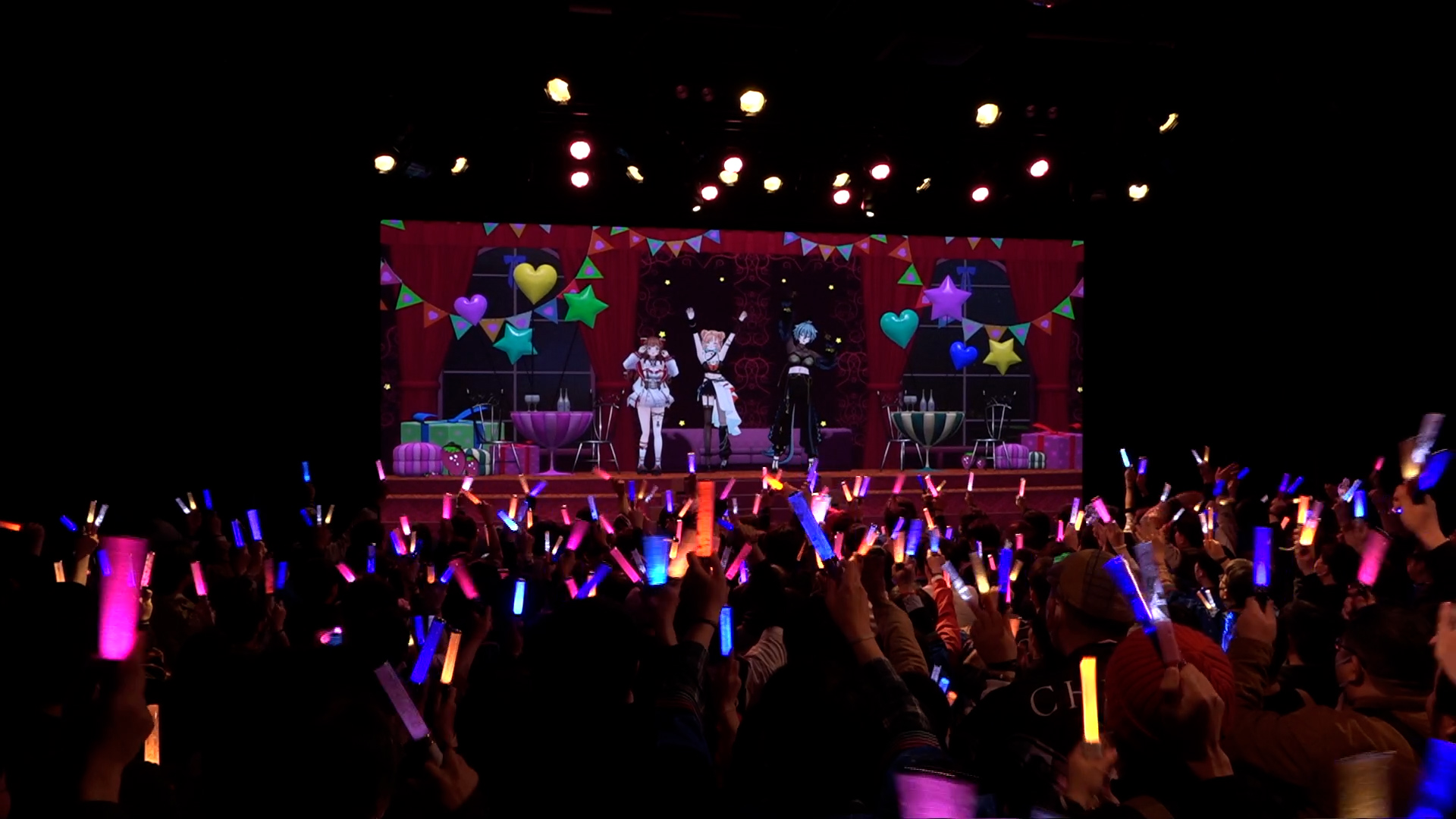 エンディングトークでは、メンバー同士が感謝のメッセージを伝え合い、それぞれのメンバーがみんなに対して安心感を覚えているということを聞き、会場は温かい雰囲気に包まれた。花京院ちえりが「何か言い残したことはありますか?」と会場へ問いかけると、予行練習なしにもかかわらず、観客が息を揃えて「今日もちえりちゃんは可愛いな~!」と応える一幕も。さらに、七星みりり、リクムの「夢見るミルキーウェイは~?」「てぇてぇ~~!!」と掛け合いコールが響き渡るなど、一体感溢れる盛り上がりを見せながら、第2部は締めくくられた。