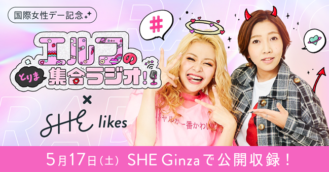 株式会社ジャパンエフエムネットワーク(以下、JFNC)が制作するお笑いコンビ・エルフのポッドキャスト番組「エルフのとりま集合ラジオ!」初の公開収録が5月17日(土)に開催決定しました。学ぶから働くまでを支援する女性向けキャリアスクール「SHElikes(シーライクス)」を運営するSHE株式会社(所在地:東京都港区、代表取締役 CEO/CCO:福田恵里、以下SHE)のコミュニティ拠点「SHE Ginza」で実施します。