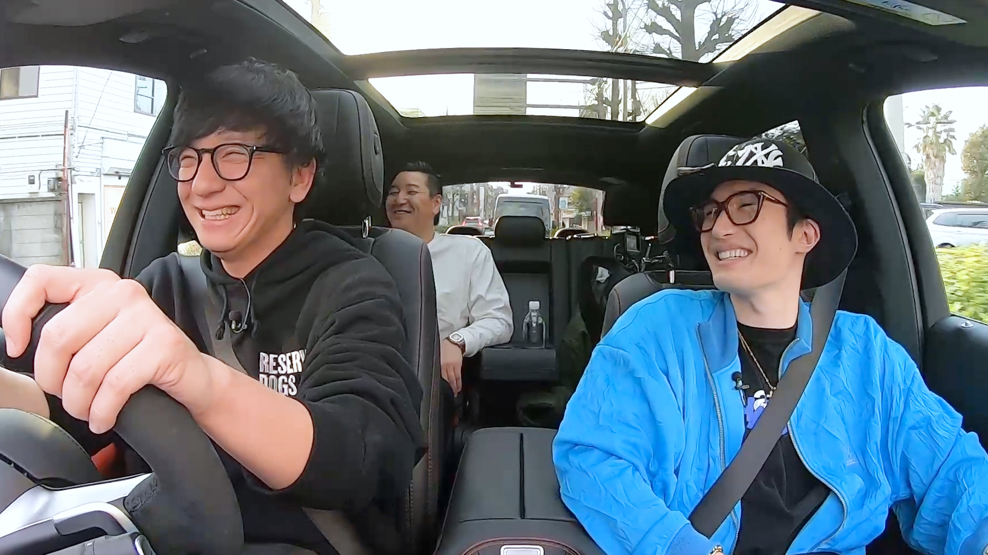今回は向井の運転でボウリング場へ。出発直後から助手席に乗ったジェシーと、後部座席に乗った長田がボケ合戦を繰り広げ、向井を困惑させます。そうして車内トークで盛り上がっていると、長田と向井のデビューと、ジェシーが事務所に入った入所年が一緒であることが発覚!