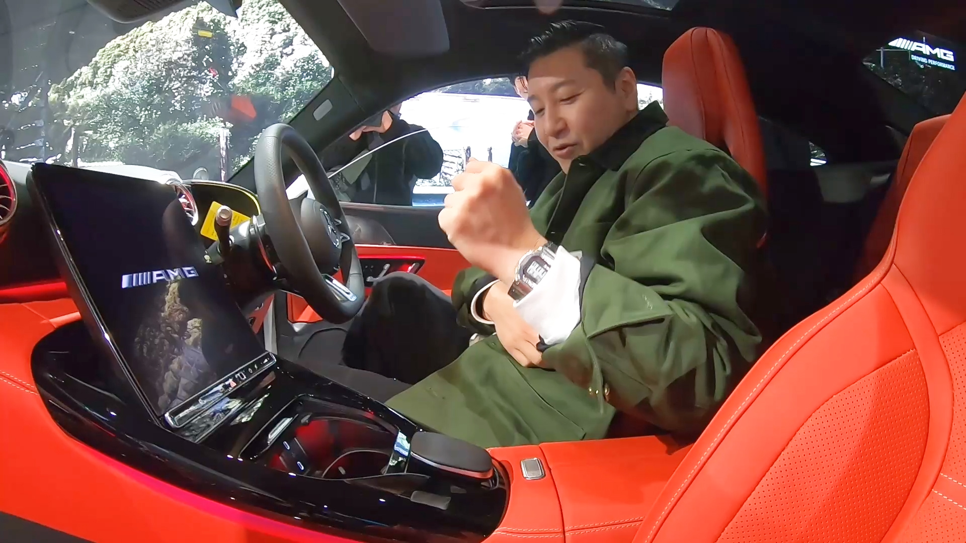 今回、一行は「AMG Tokyo Setagaya」へ。説明を受けながらも、ワイワイと楽しく、最新モデルや人気モデルなどを見て回ります。実際にジェシーが運転席に乗る一幕も!