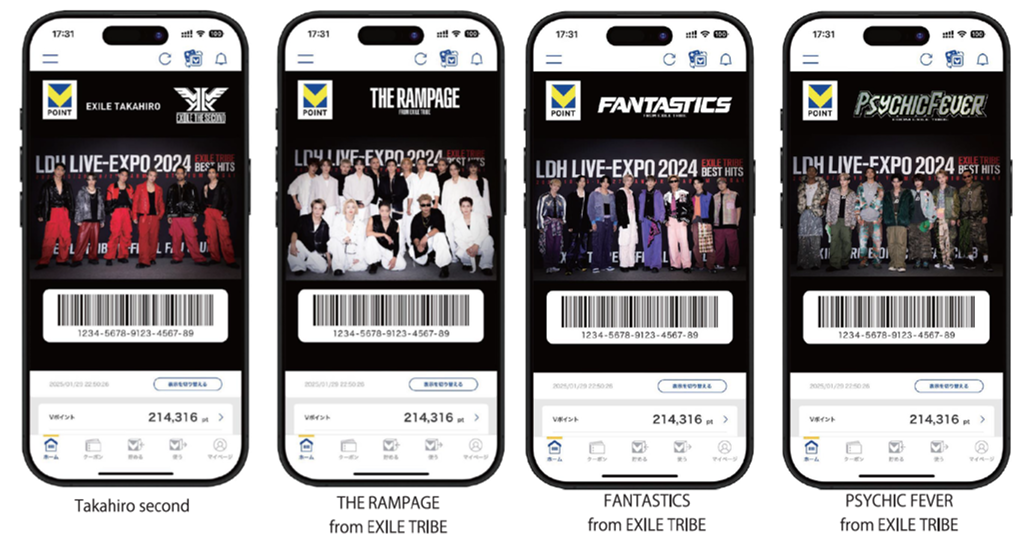 「LDH LIVE-EXPO 2024」DVD&Blu-ray発売を記念して、Vポイントアプリの「モバイルVカード」を好きなデザインに着せかえできる「Vキセカエ」(https://ip.tsite.jp/guide)において、LDH所属の11アーティストのデザイン全11種を3月26日(水)10時より販売開始いたします。