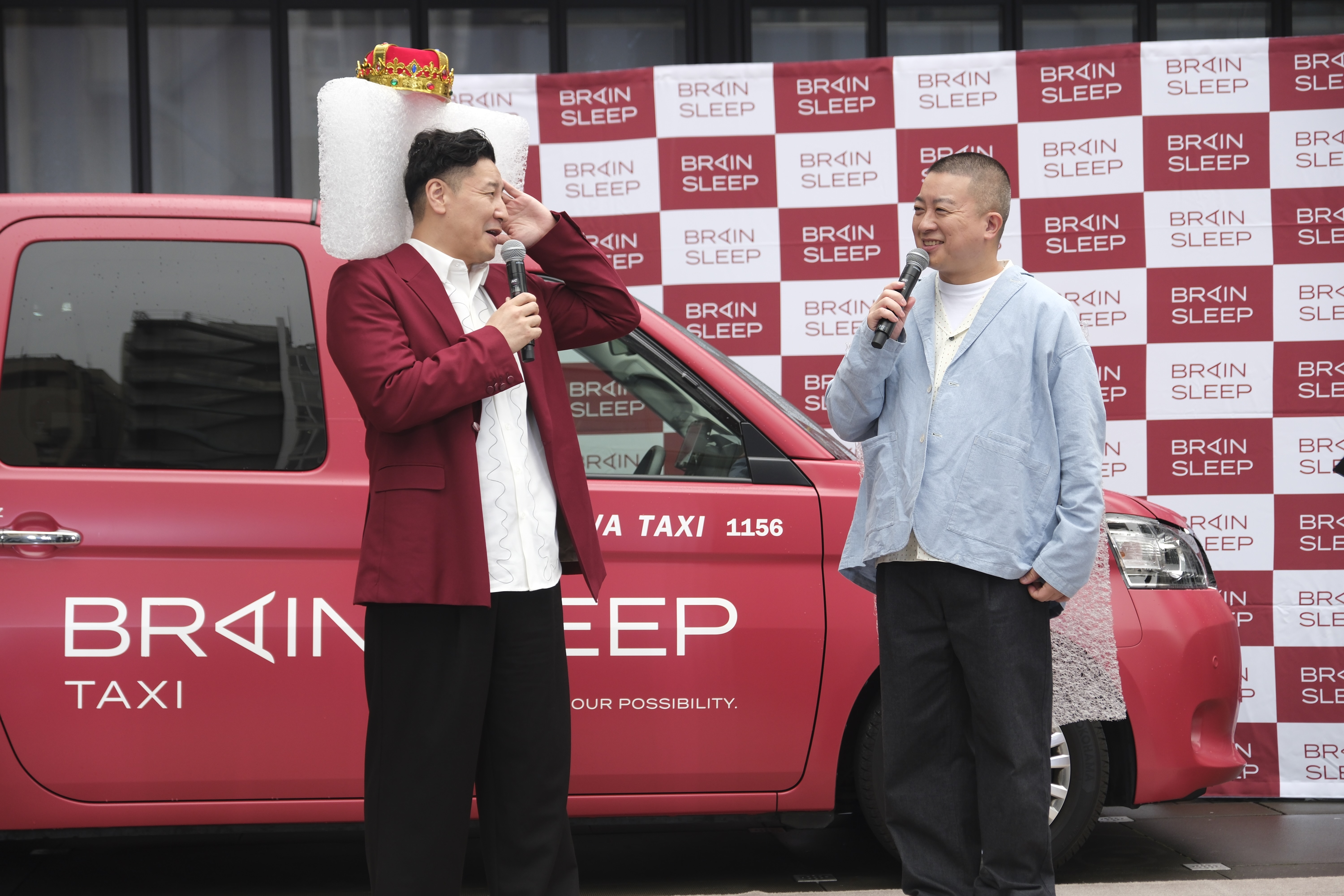 株式会社ブレインスリープ(本社:東京都千代田区、代表取締役:廣田 敦、以下「ブレインスリープ」)は、”脳まで眠る”睡眠の実践者代表の「マスター オブ ブレインスリーパー」であり、結成20周年を迎えたお笑い芸人のチョコレートプラネット長田 庄平さん(以下、長田さん)と、ずっコビの相方の松尾 駿さん(以下、松尾さん)をゲストに迎え、初のタクシー企画となる“脳まで眠る”睡眠を啓蒙する<ブレインスリープ タクシー>の運行開始を記念したメディア発表会を3月12日(水)に開催いたしました。