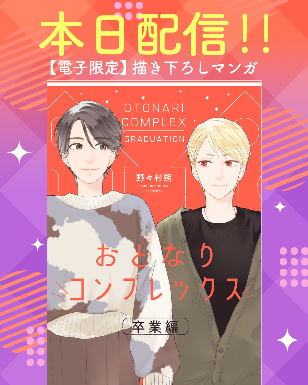 株式会社リブレは、コミックス「おとなりコンプレックス」(著:野々村朔)のドラマ化を記念し、電子限定番外編読切マンガを3月13日(木)より配信を開始します。