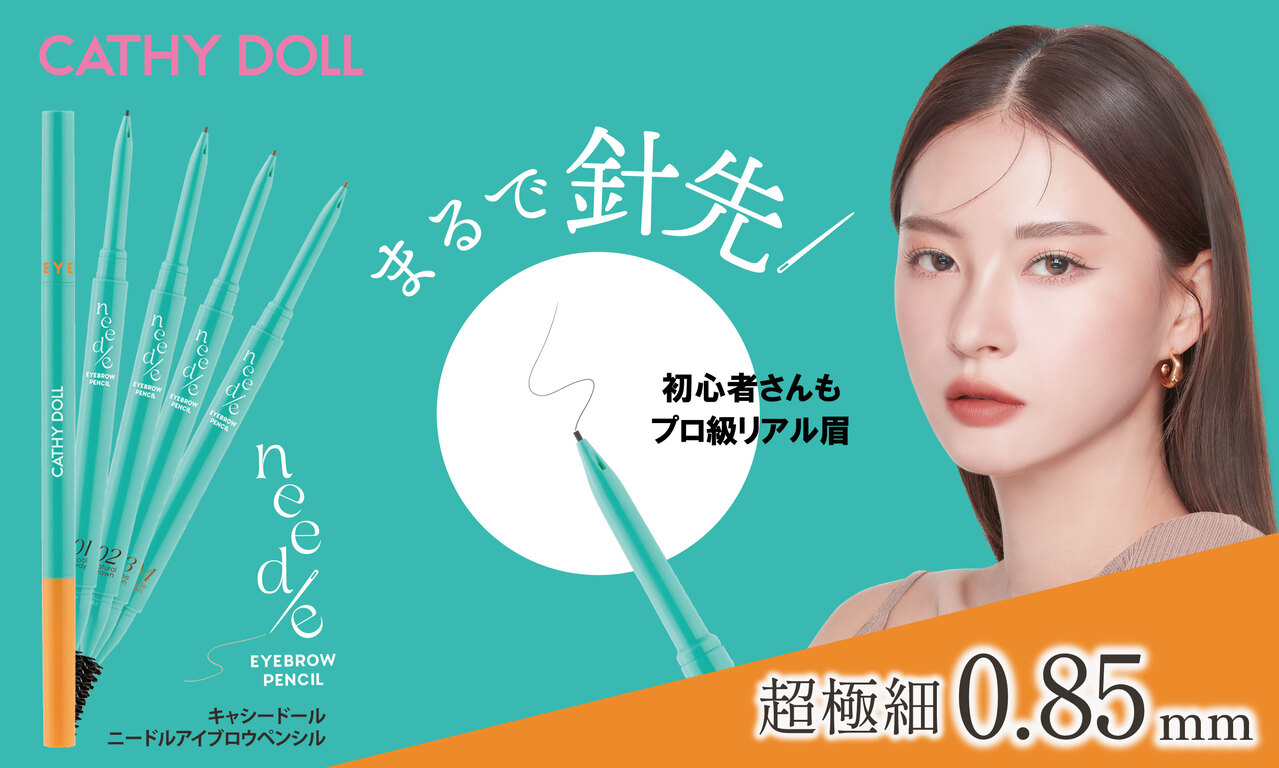まるで針先のような超極細芯アイブロウペンシル「Cathy Doll ニードルアイブロウペンシル」が登場!0.85mmの超極細ペンシルは驚くほど自然な眉を描け、まるで自眉毛のような繊細な仕上がりに。力を入れずにするすると描ける美発色で自然に仕上がるから、初心者さんや男性にもおすすめです。汗・水・皮脂に強く、消えやすい眉尻もきれいな仕上がりを長時間キープ。