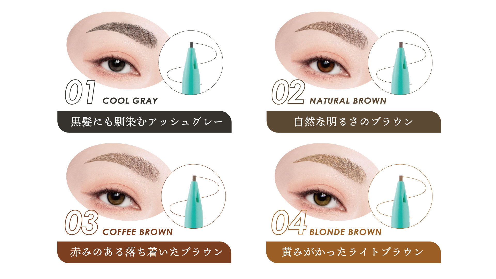 まるで針先のような細さの超細芯アイブロウペンシル。眉尻や、自眉毛が足りていない部分を1本1本リアルに描き足せます。眉頭に毛を描き足せば一気に今っぽいお洒落顔に仕上がりに。タイの美人顔 “スワイメイク” にも欠かせないアイテムです。