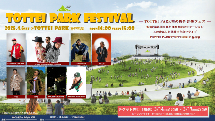 このたび、GLION ARENA KOBEに隣接する屋外パークエリアにて、こけら落としイベントとなる野外音楽フェス『TOTTEI PARK FESTIVAL』を開催に伴い追加ゲストが決定しましたので発表いたします。先日発表した4月6日(日)のラインナップから追加となる4月5日(土)のイベントでは、神戸港のパノラマビューで開放感あふれる屋外ステージに、RYO the SKYWALKERをはじめとした多彩なアーティストが出演決定。心地よい海風を感じながらお楽しみいただけます。また、TOTTEI沖では同日開催されるB.LEAGUE神戸ストークスのこけら試合を祝して、チームカラーのGREENで神戸市消防艇による祝賀展示放水が実施予定。日没からは神戸ポートタワーや神戸海洋博物館・神戸市立博物館などがストークスGREENをイメージしたライトアップで彩ります。神戸の新たなエンタメシーン誕生をまちをあげてお祝いする特別な一日にご期待ください。