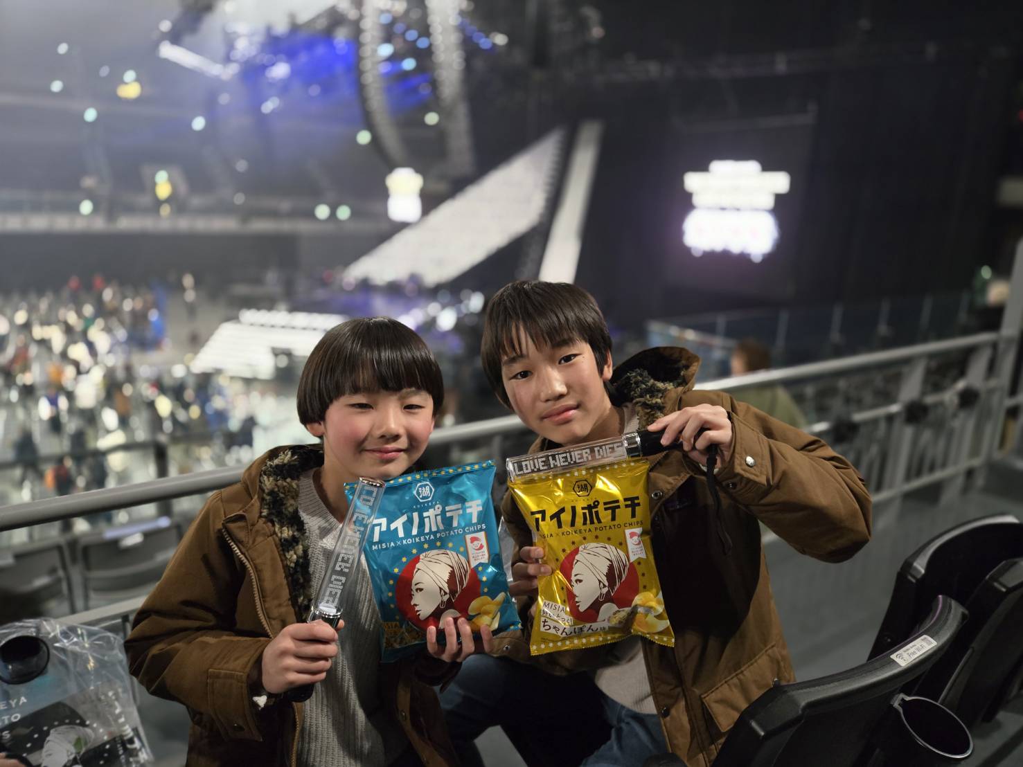 子どもたちには、このプロジェクトだけの特別なチケットを発行し、さらにMISIAからグッズのペンライトと湖池屋とコラボしている「アイノポテチ」をプレゼントしています。ライヴ中に子どもたちは、ペンライトを思いっきり振ってステージを楽しみながら、MISIAがトロッコに乗って近くを通ると「MISIA―!」と大きな声で声援を送ってくれました。