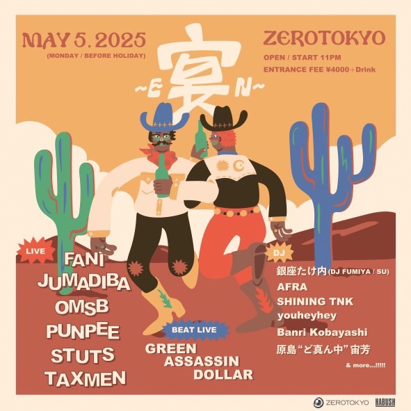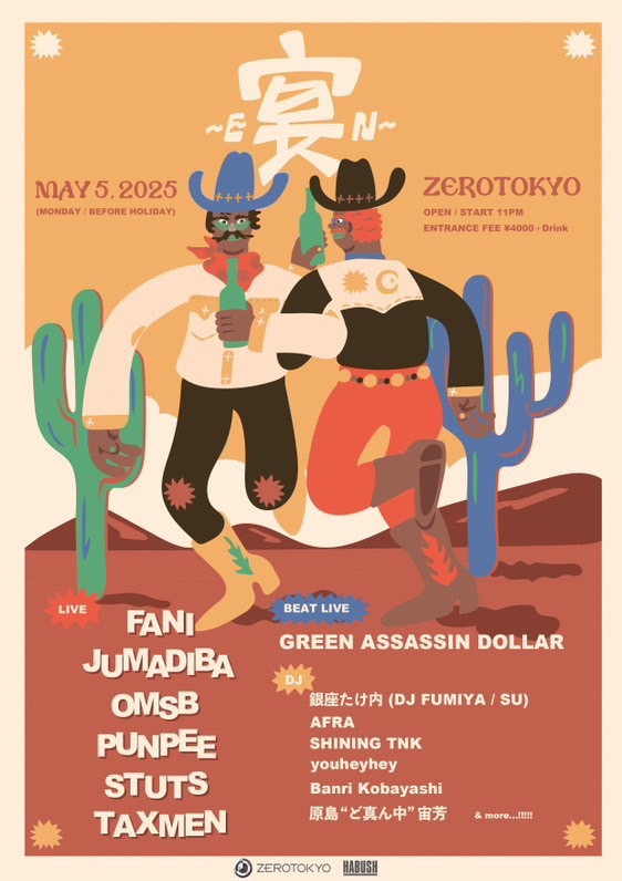 ライブにPUNPEE、OMSB、 JUMADIBAにSTUTS、京都からFANI、そしてTAXMEN、ビートライブにGREEN ASSASSIN DOLLARの出演が決定です。