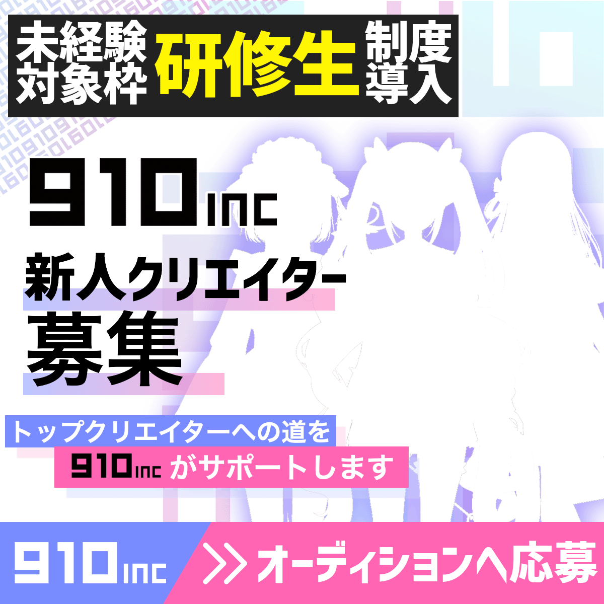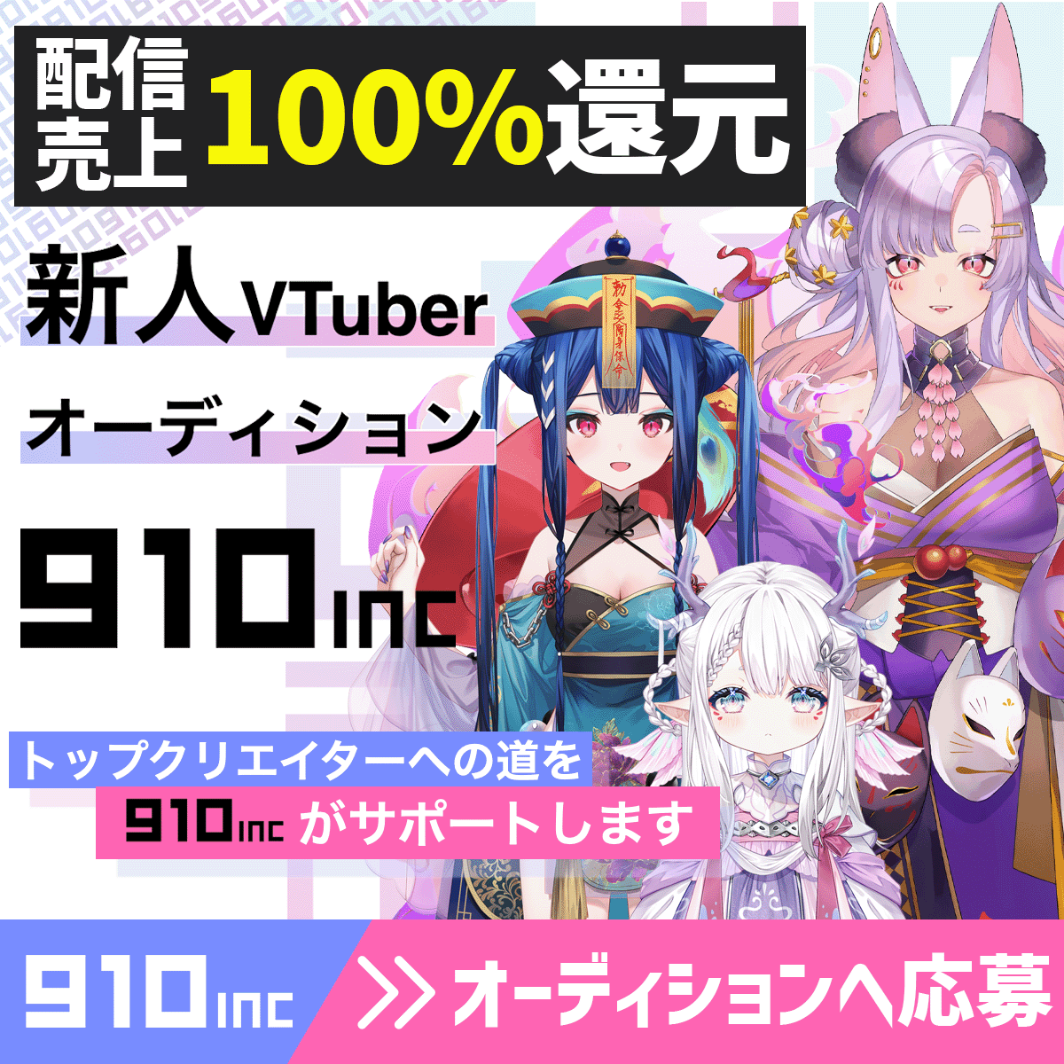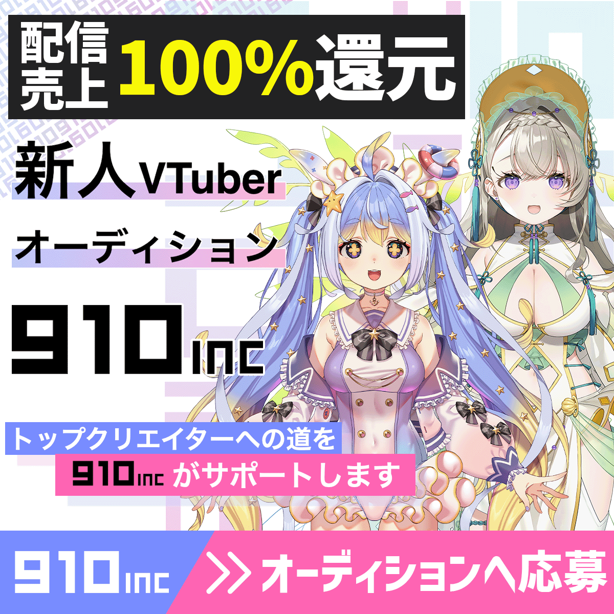 910incでは業界では珍しい魂交代オーディションや従来の新人VTuberオーディションを複数展開中です。
