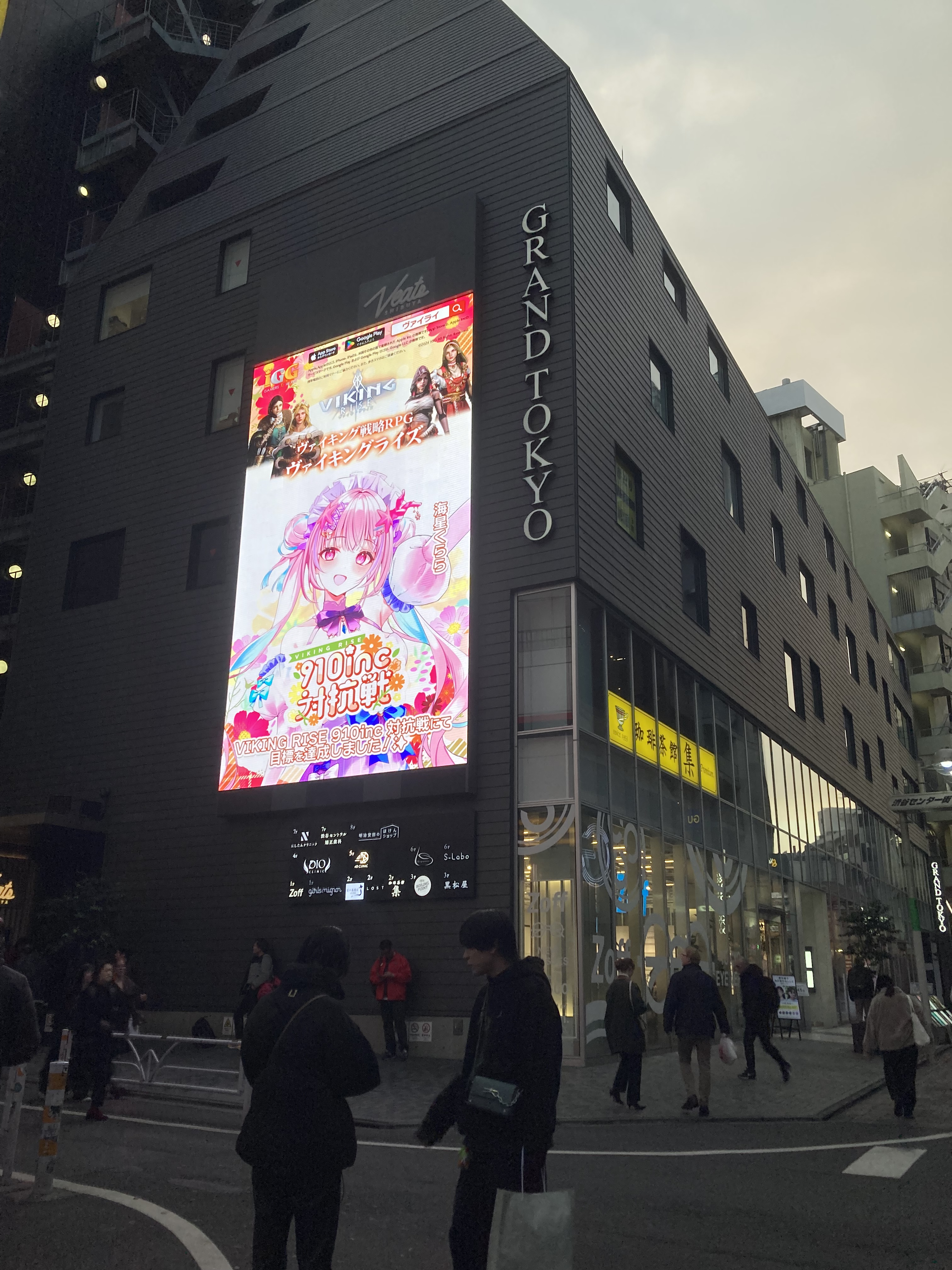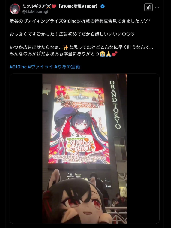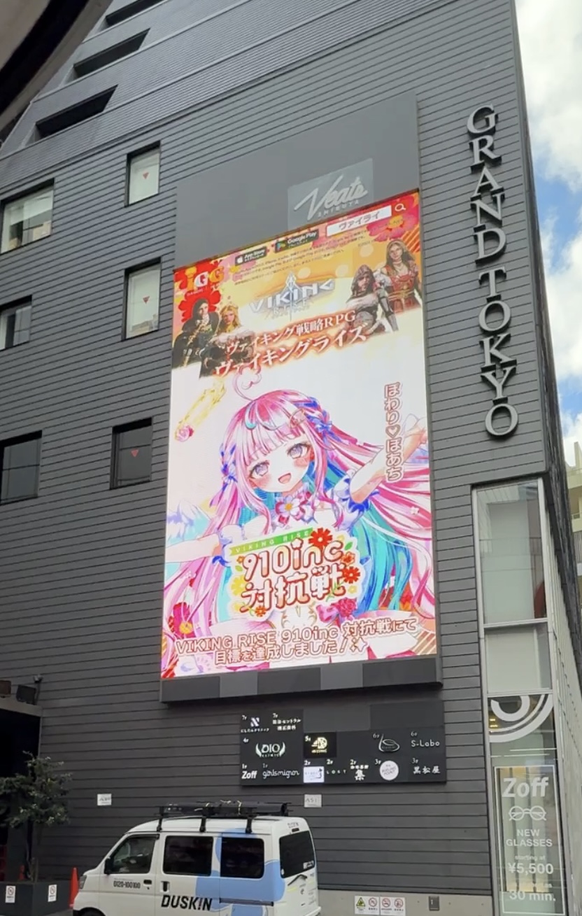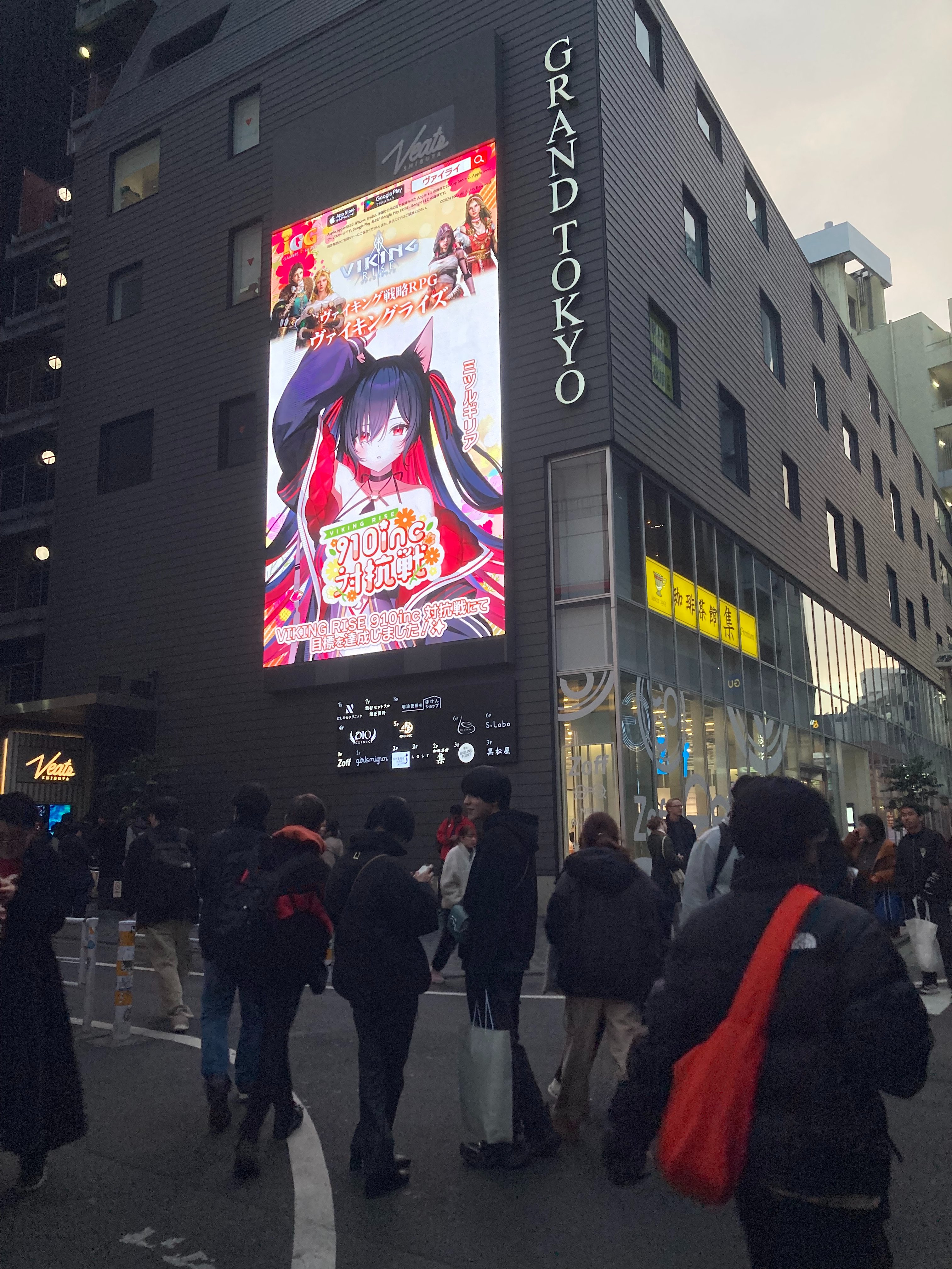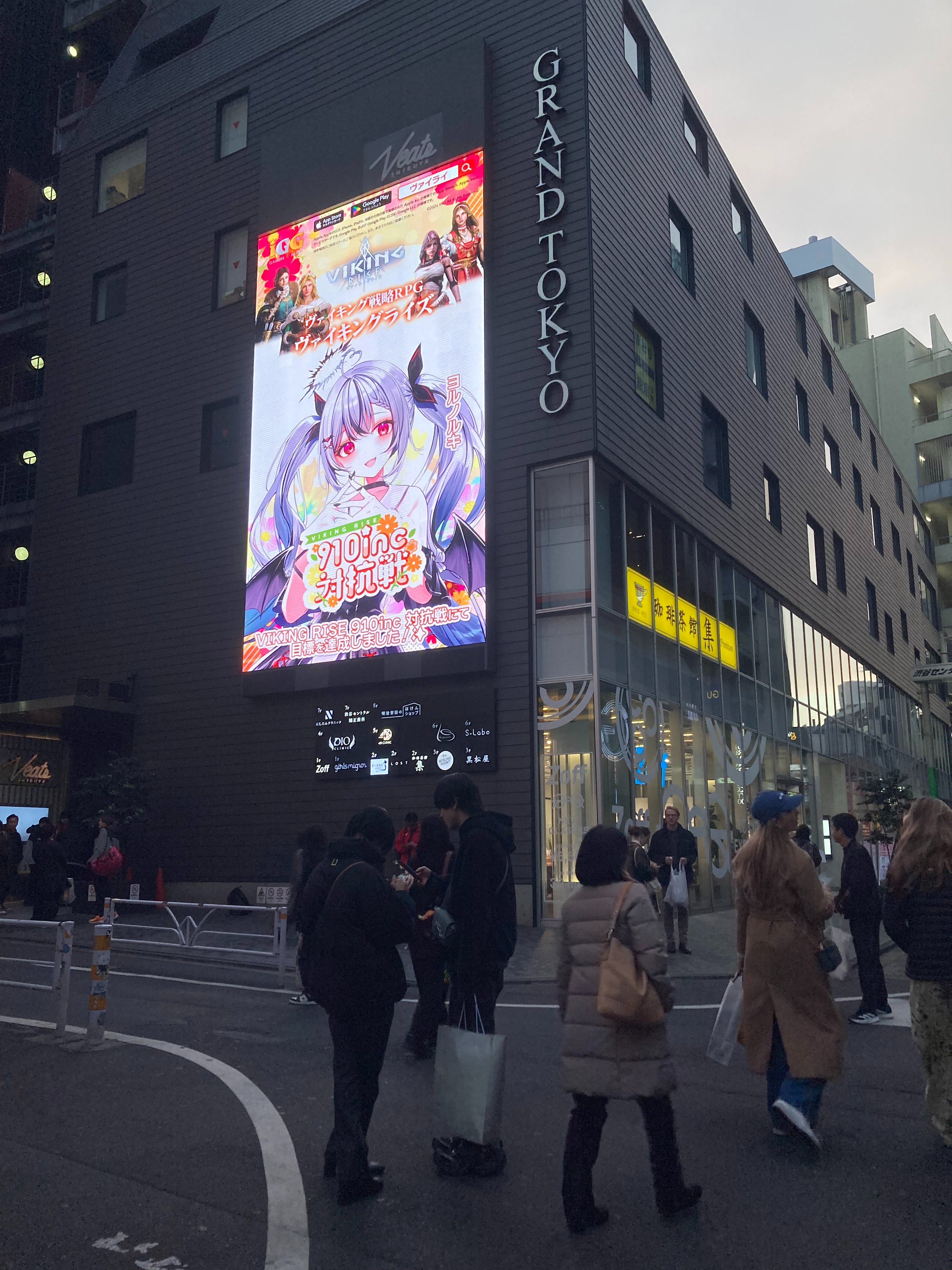 ヴァイキングライズ910inc対抗戦イベントの特典を獲得した910inc専属VTuberメンバーが渋谷大型ビジョン”Veats Shibuya Vision”にCMが掲載されました。