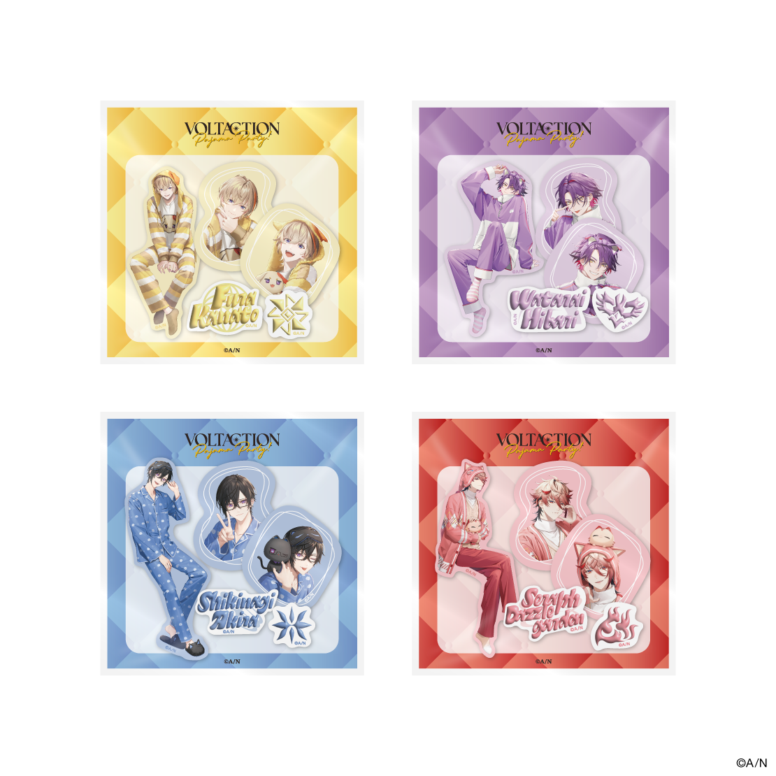 当社が運営するバーチャルライバーグループ「にじさんじ」所属の風楽奏斗、渡会雲雀、四季凪アキラ、セラフ・ダズルガーデンによるユニット「VOLTACTION」からパジャマパーティーをテーマとした新グッズが登場!