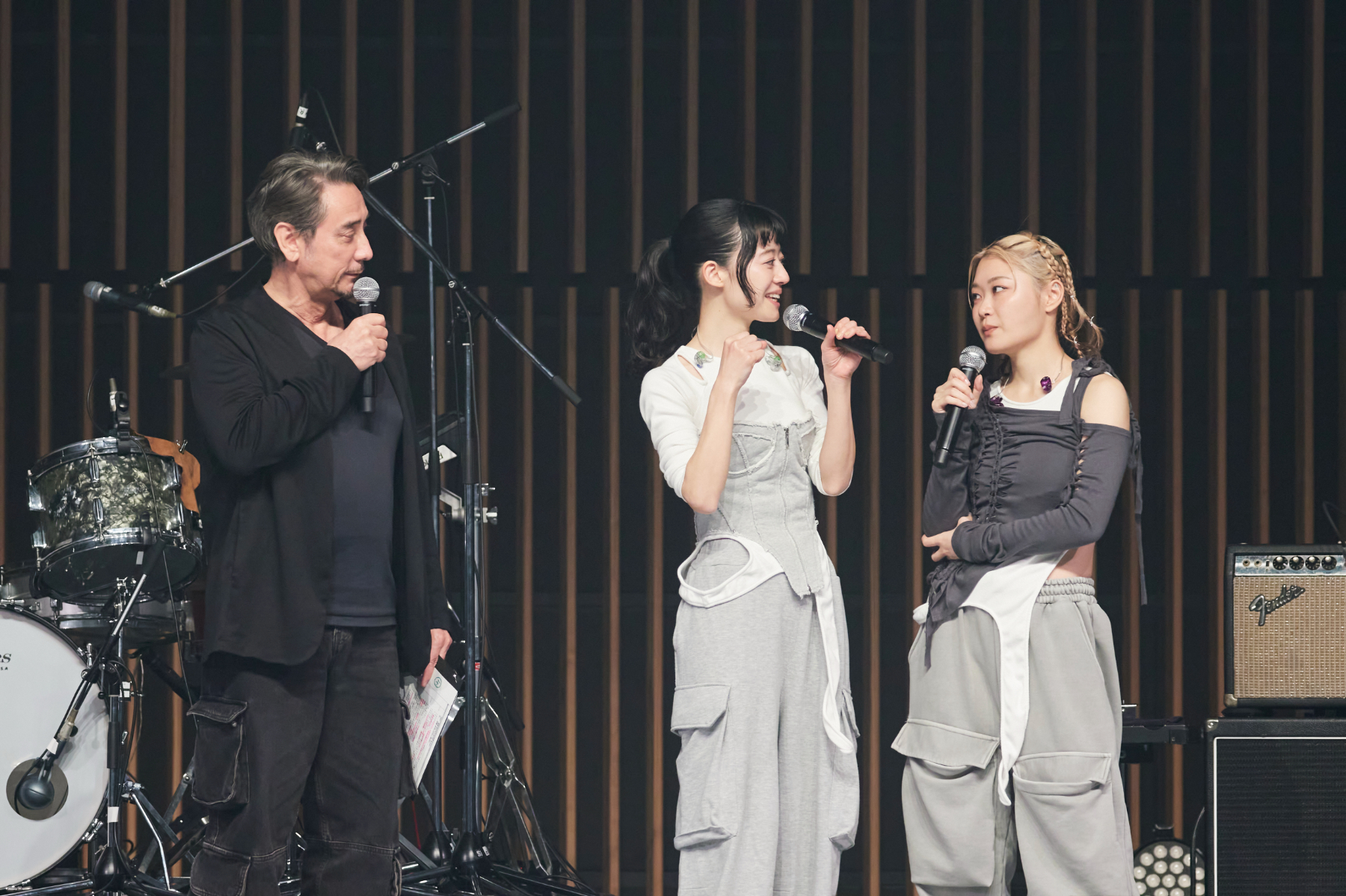 ライブを終えると、塩塚と河西が再びステージに登場し、クリス・ペプラーとトーク。ライブの感想を聞かれると、「『立っていいのかな?』ってそわそわしたり、手を振ってくれたりしているみんながかわいかった」「それぞれのスタイルで聞いてくれてあったかくてうれしかった」と、ライブハウスやホールとは違う環境でのパフォーマンスを楽しんだ様子。また、未来体験シアターについての話題になると、自身の体験した感想を「気がついたら泣きそうだった」と話した。この日のライブで初披露となった「未来地図2025」で打ち込みを導入したことについては「いつもとはまた違って」「“こんなに風になるんだ”って思ったよね」と述べ、この日の初披露へ手応えを感じたと明かした。