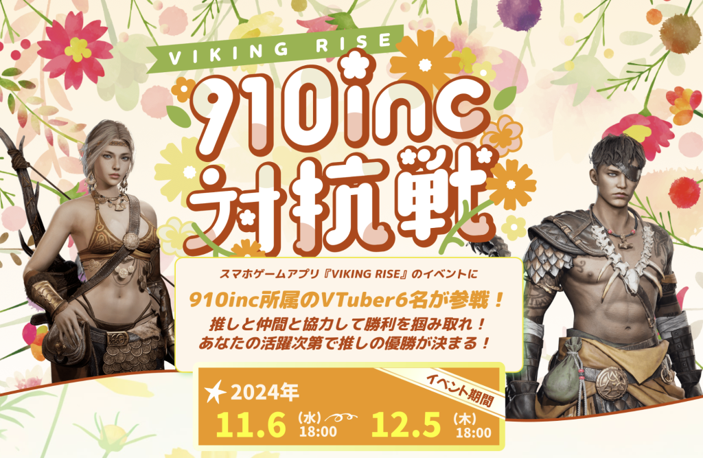 VTuber事務所910incの運営会社であるWACTORは、ロードモバイルやアルケミストガーデンなどの人気ゲームを展開するIGG様のタイトル”ヴァイキングライズ”と、910inc所属VTuber6名のみでタイアップイベントを展開いたしました。