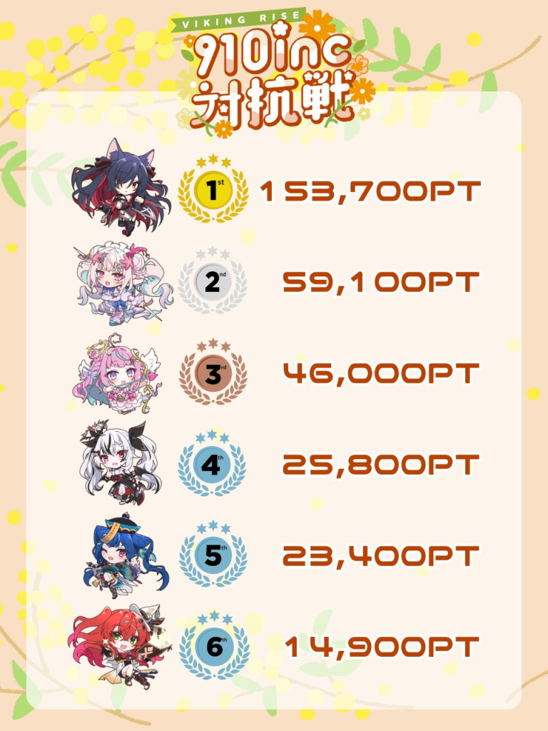 VTuber事務所910incは世界的ゲームアプリ会社であるIGGタイトル"ヴァイキングライズ"にて910incギルドイベントを開催し、ミツルギリアが優勝。