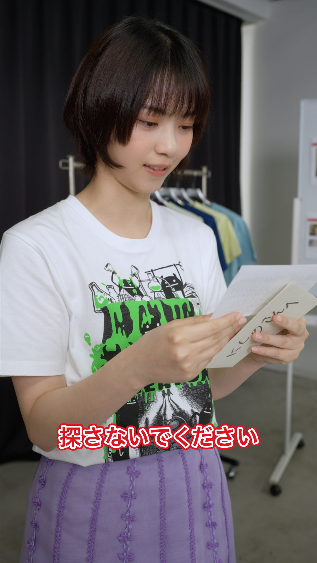 グラニフの動画撮影が終わり、Tシャツのプレゼントを受け取った西野さん。商品を手に取ると、Tシャツからキャラクターが消えていることに気づきます。そしてグラニフキャラクターからお手紙を受け取った西野さん。手紙には「探さないでください」というメッセージとともに、キャラクターから隠れている場所のヒントが。最後は西野さんから動画をご覧の皆さまへのメッセージで「みつけて!グラニフ!」がスタートします。
