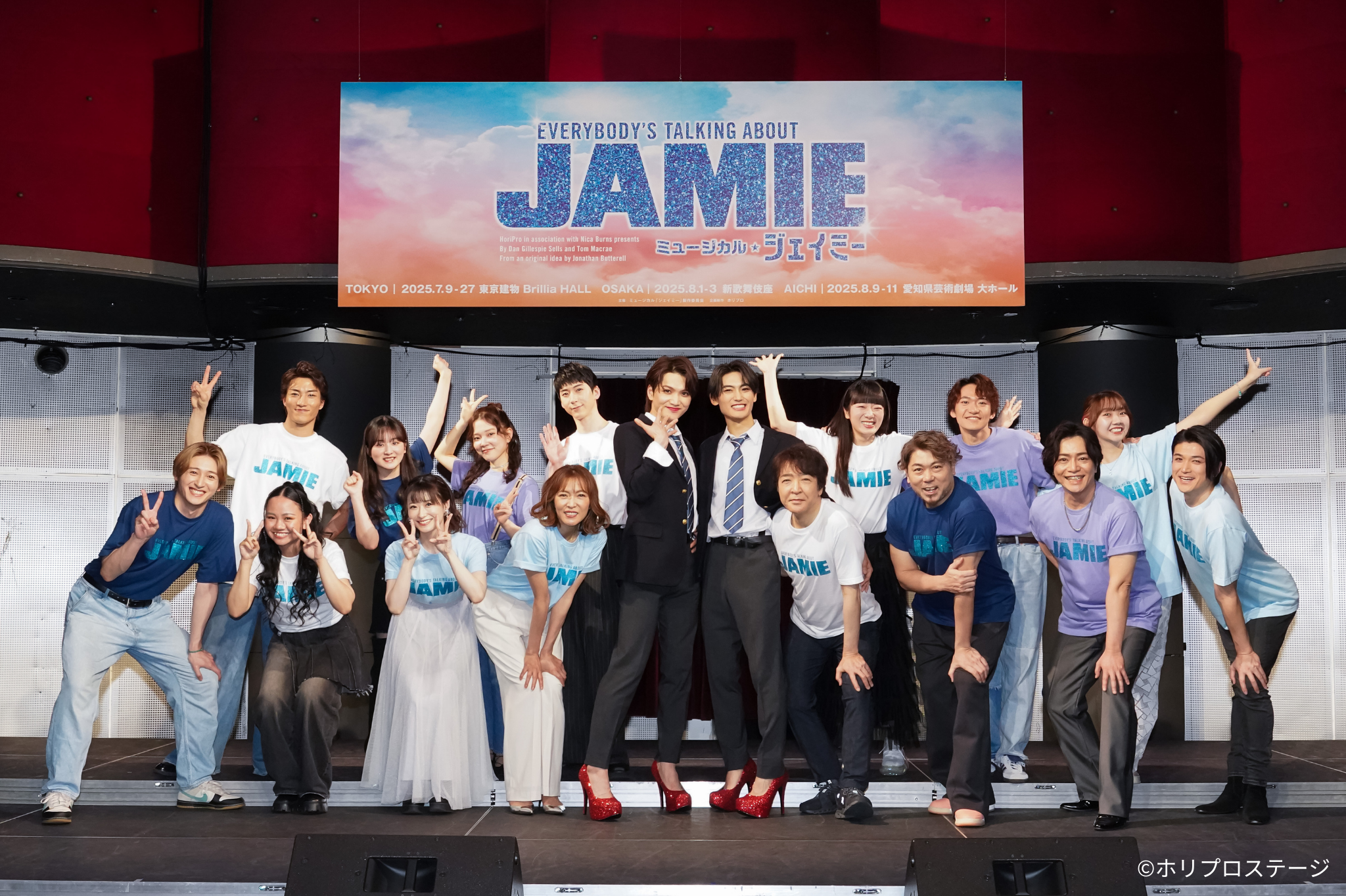 今年7月に東京建物 Brillia HALLにて開幕するミュージカル『ジェイミー』の製作発表が4月3日(木)に開催された。ジェイミーを演じる三浦宏規、髙橋颯(WATWING)を含めた18名が登壇し、劇中より計3曲を披露した。東京公演チケットは絶賛販売中!