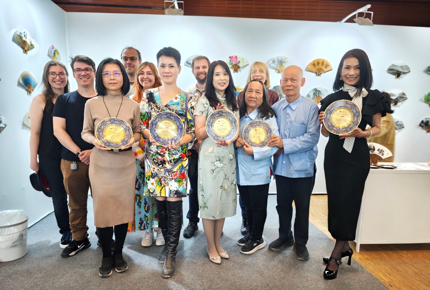 出展したアジアのアーティストたちが展示エリアで記念撮影。前列左から順に、陳孟環、盧嵐新、黃姿瑛、蔡玉雲、簡玄明、吳欐櫻。