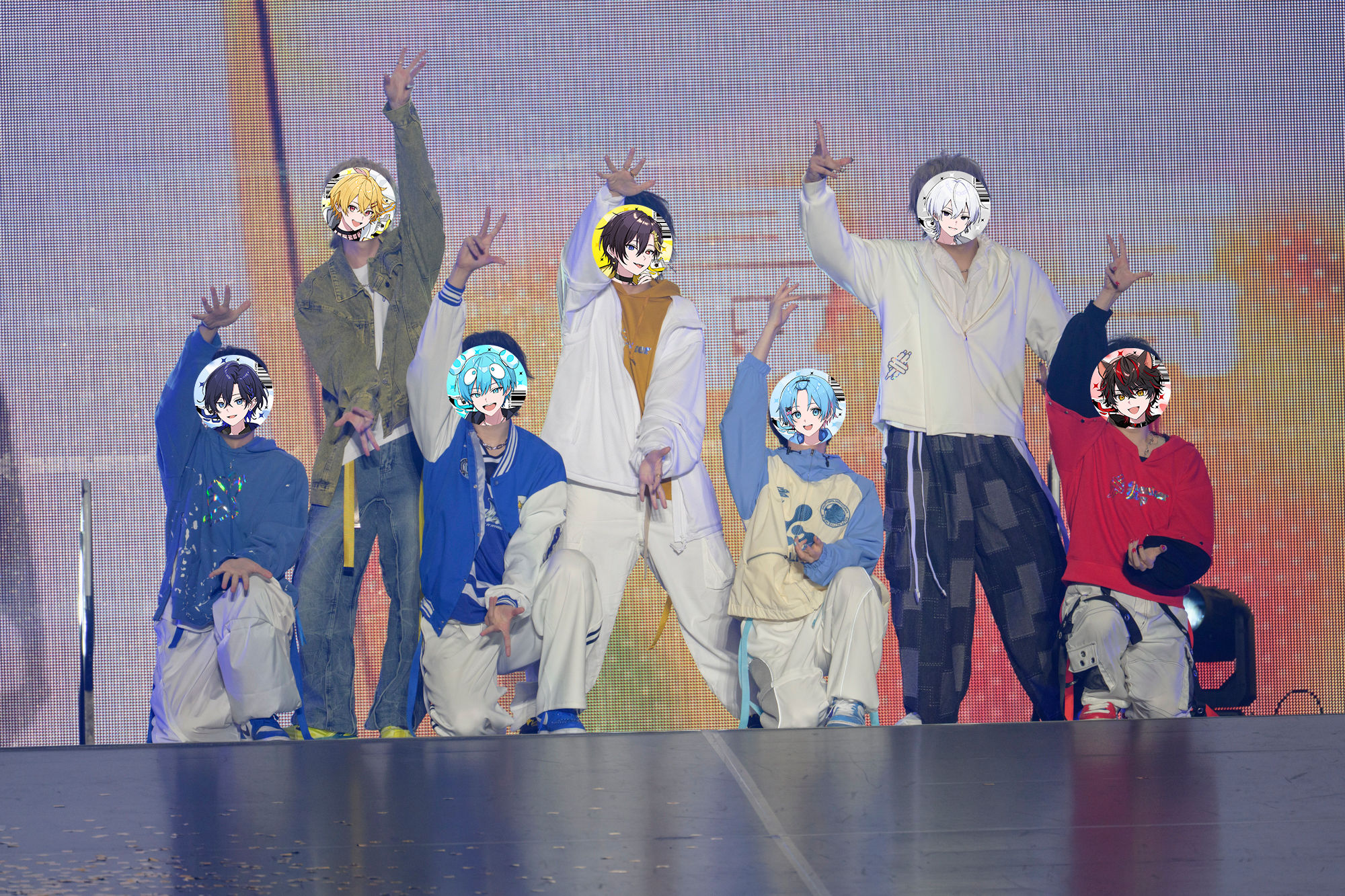 なにより、STPRファミリーのクリエイターがお互いに敬意を持っているのが、このSTPRの強みといえる。「RAINBOWxCOLORS」(AMPTAK)、「NOROSHI」(めておら)、「夢のその先へ」(Knight A – 騎士A -)を、STPR全体で歌唱。先日配信されたグループ横断の動画企画『STPR紅白合戦』のチーム分けで歌うパートなども盛り込まれた「PEACE」と、『すとふぇす』に向けて作られた曲「STAR to STPR」では、すにすても加わり、大規模なシンガロングが統一感を生む。