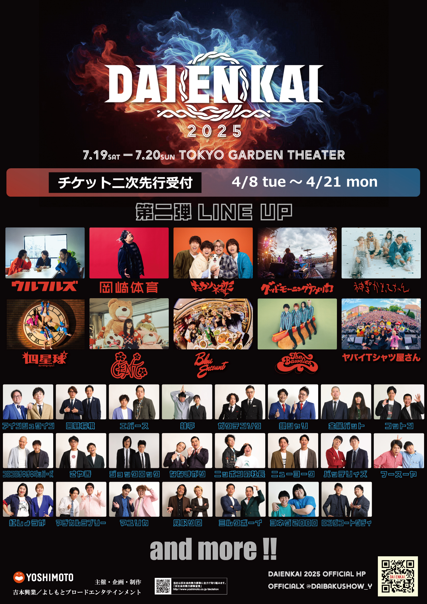 2025年7月19日(土)、20日(日)に東京ガーデンシアターにて開催する『DAIENKAI 2025』の追加ラインナップが決定しました。