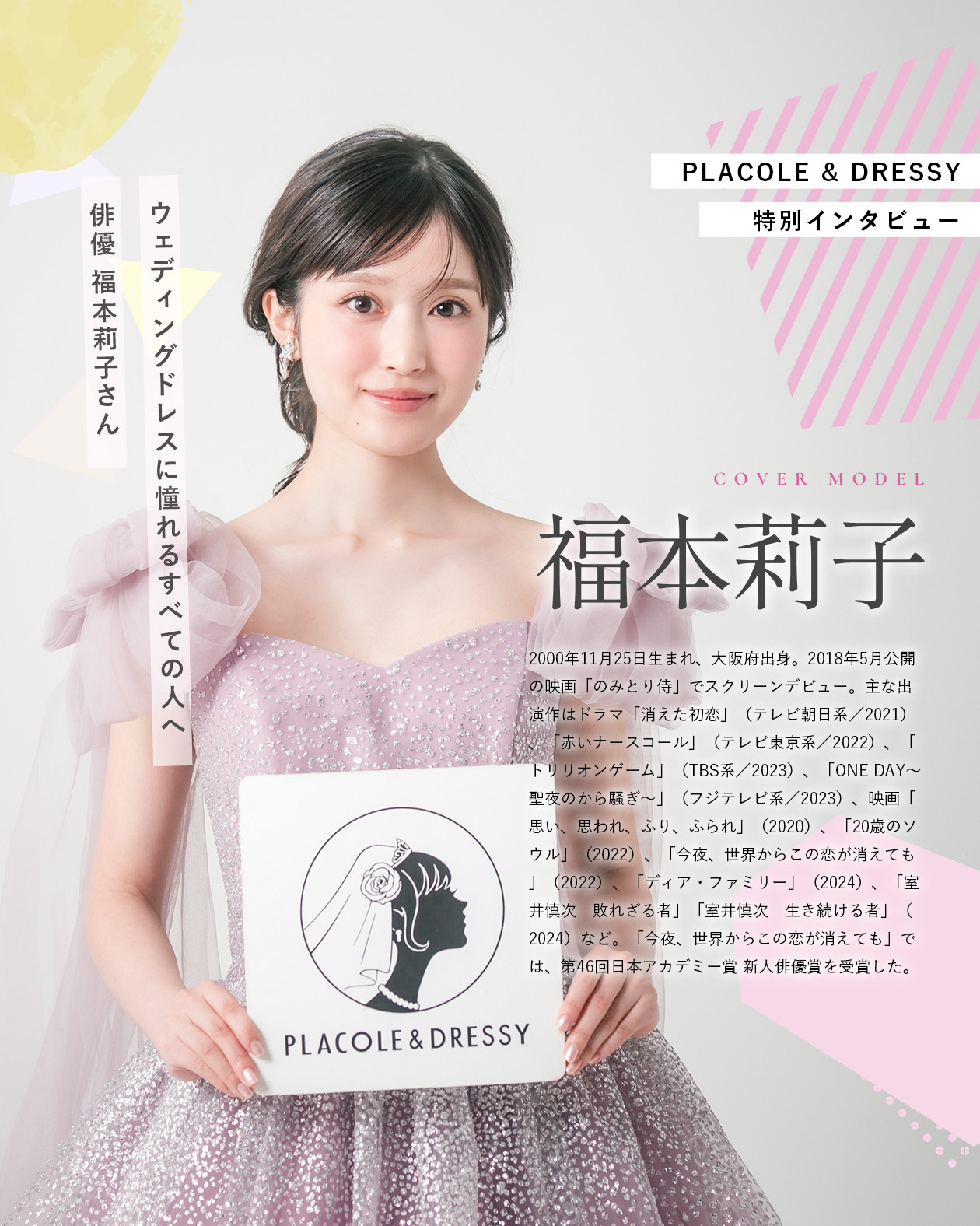 「PLACOLE & DRESSY」ブランドを展開する、冒険社プラコレ(本社:神奈川県鎌倉市、代表取締役CEO:武藤功樹)は、ウェディングドレスをもっと身近に楽しんで欲しいと考え「ウェディングドレスに憧れるすべての人へ」PLACOLE&DRESSYが贈る、特別コンテンツをスタート。2025年4月は俳優 福本莉子さんを迎え、メッセージを頂きました。