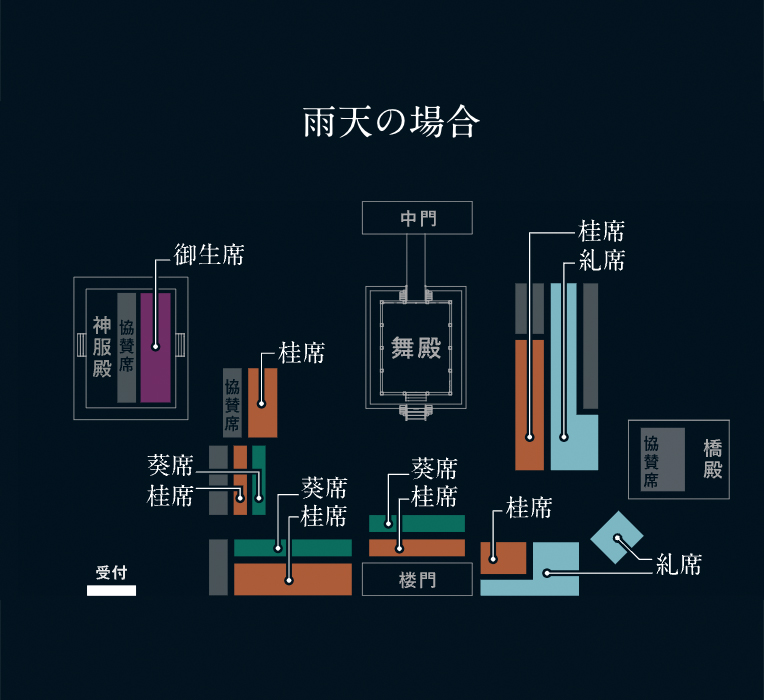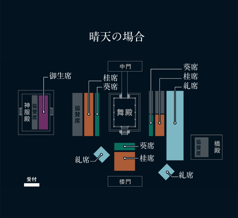 ※御生席、葵席、桂席は全席指定席、糺席は自由席エリアでのご観劇となります。