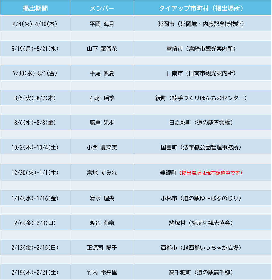 四期生11名のバースデーに合わせて、令和6年度の「ひなたフェス2024」の際にタイアップしていた市町村に再設置します。
