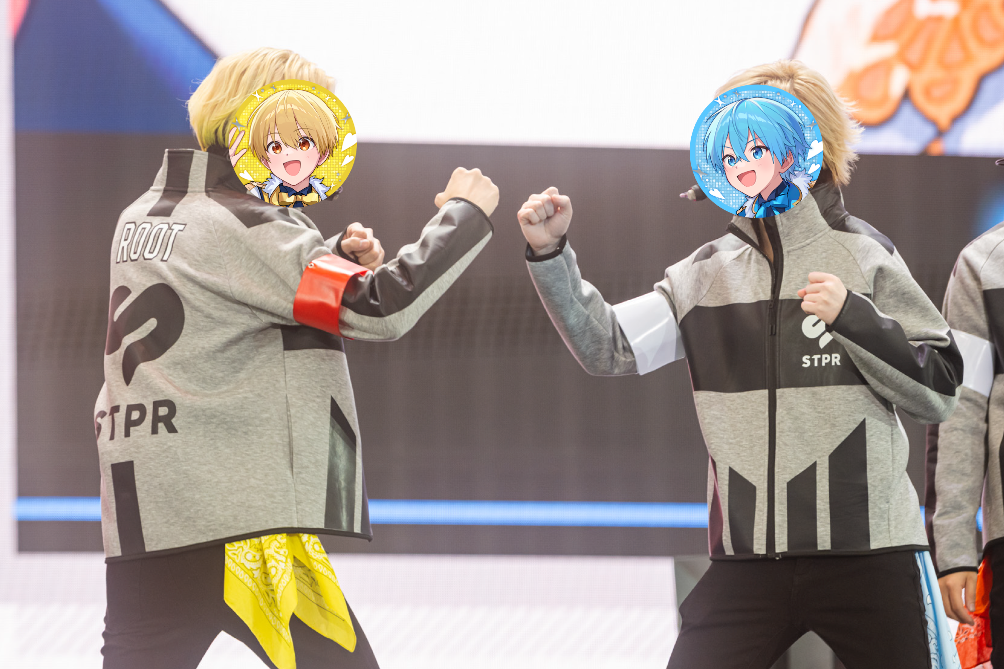 4月4日(金)と4月5日(土)の2日間にわたって開催されたイベントは、すとぷりの莉犬が団長を務める紅組と、すとぷりのころんが団長を務める白組に分かれ、勝敗を競い合う形式だった。4日の『STORM of CHAMPIONS』(MUSIC FES & SPORTS !)では、綱引き、風船割り、玉入れ、巨大ボール運び、三輪車レースのスポーツ競技で熱戦を繰り広げた。また、5日『SUPER GAMERS SHOWDOWN』(MUSIC FES & GAME !)では、ぷよぷよテトリス、太鼓の達人、ピコパーク、UFOキャッチャー、スプラトゥーン3のゲーム対決で盛り上がった。最強のエンターテイナーとして知られるすとぷりのメンバー・ジェルが、この2日間とくに冴えわたっていたのも見どころのひとつ。連日、対決が始まる前の自己紹介パートで、7月に全国の映画館で上映が決定している自身のアニメ映画『遠井さんは青春したい!「バカとスマホとロマンスと」』のムビチケ前売り券をしっかり宣伝。「ちぐちゃん(AMPTAK・ちぐさくん)につけてもらいました」と、オレンジ色の髪にそのムビチケを飾って自慢するなど、ドームを笑い声でいっぱいに満たしていた。