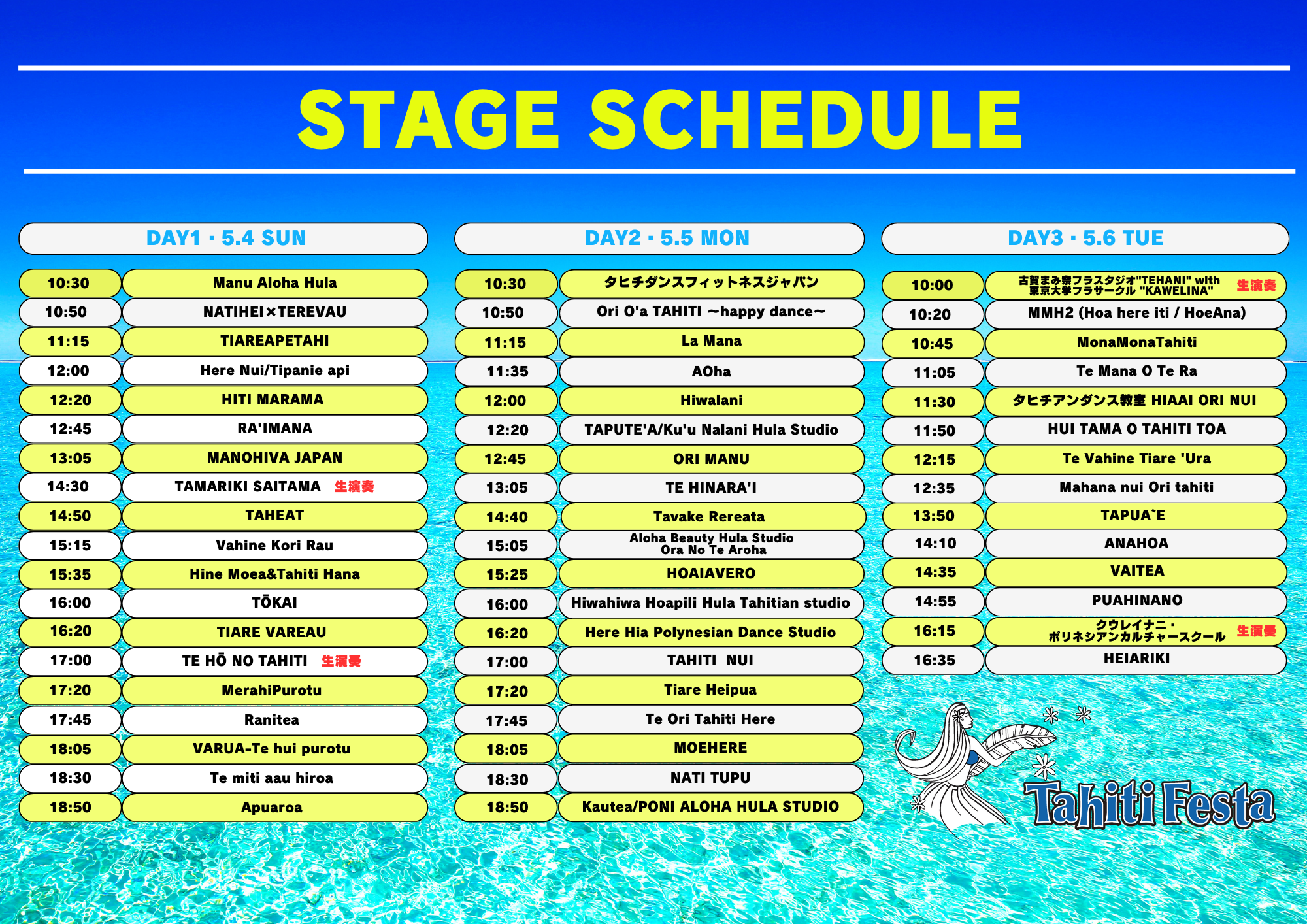 ・タヒチダンス、音楽、工芸、グルメなどで、タヒチ気分が味わえます・世界的なトップタヒチアンダンサーや、日本タヒチアンダンスのパイオニアTe Ra KYOKOもステージに登場!