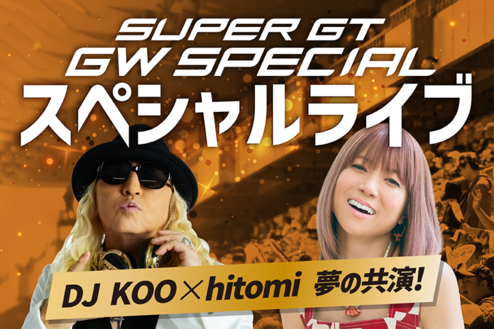 富士スピードウェイで 5月3日(土)、4日(日)に開催する「SUPER GTゴールデンウィークスペシャル」の開催期間中、DJ KOO さん×hitomiさんによる『GW スペシャルライブ』が決定しました。